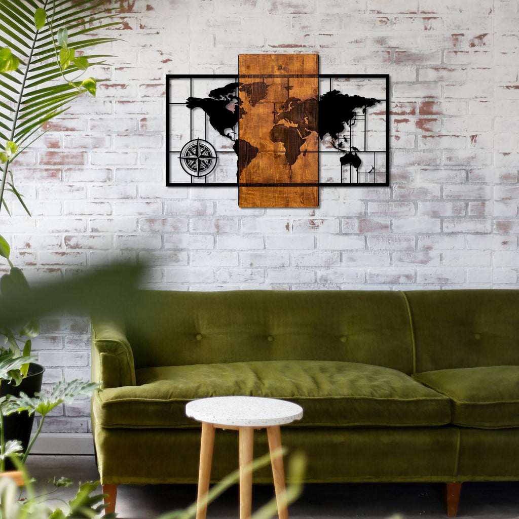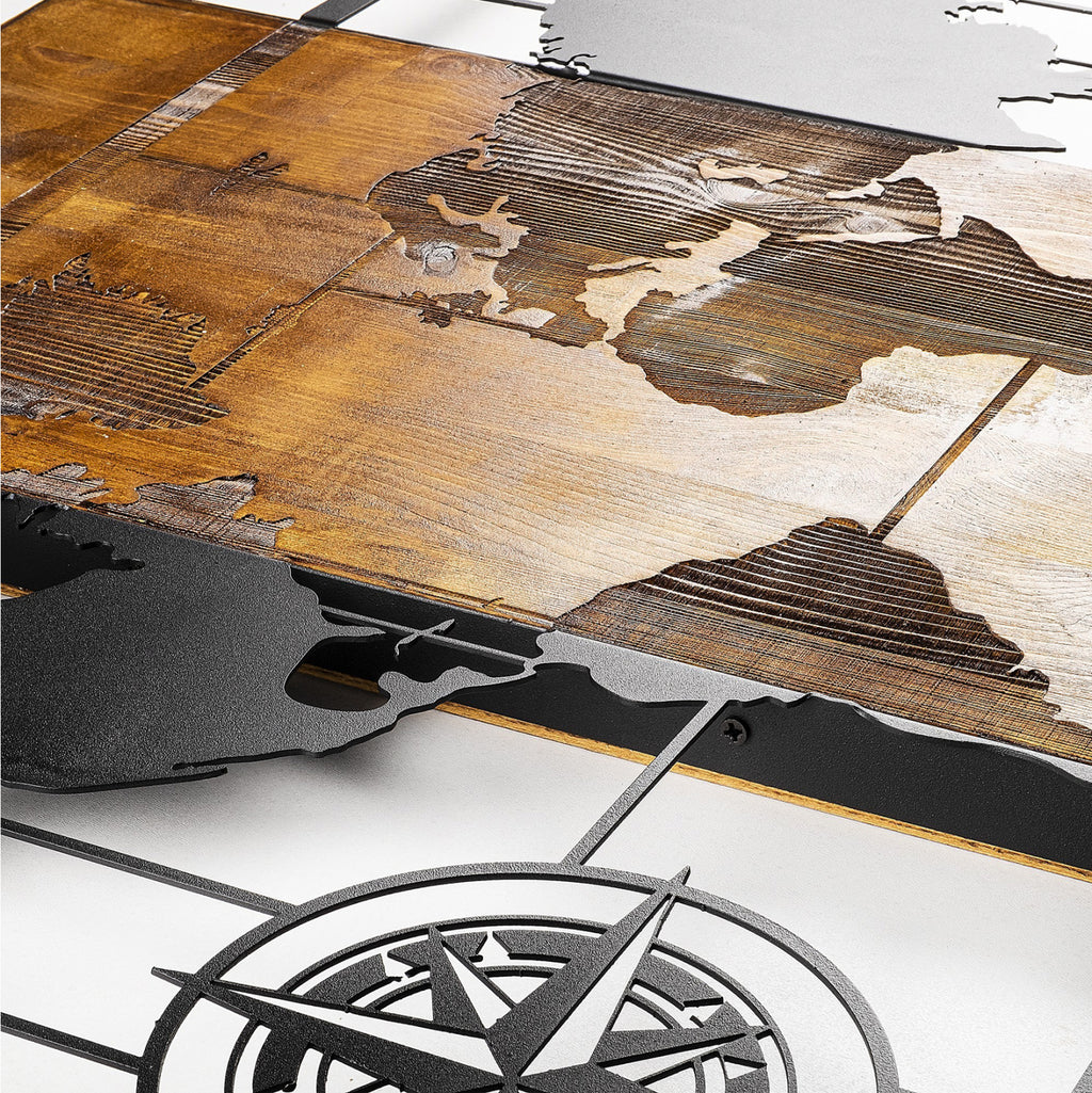Декорацията на едно пространство е особено важна, тъй като тя "издава" нашата естетика и индивидуалност. Стенната декорация привлича вниманието на хората в стаята, така че трябва да включва стилни предмети. Тази специална конструкция, изработена от метал в комбинация с дърво, е идеалната декорация за стената на вашия дом или бизнес. Нейният дизайн е карта на света в черно, чиято централна точка е върху естествено дърво. Подходящ за всички части на дома или на работното място и брилянтна идея за подарък! Характеристики на продукта: Декорация за стена Материал: Дърво и метал Цвят: Естествен и черен Размери: 85x58cm Дебелина: 3mm Европейски производство и произход. Продуктът се предлага във фабрична опаковка.