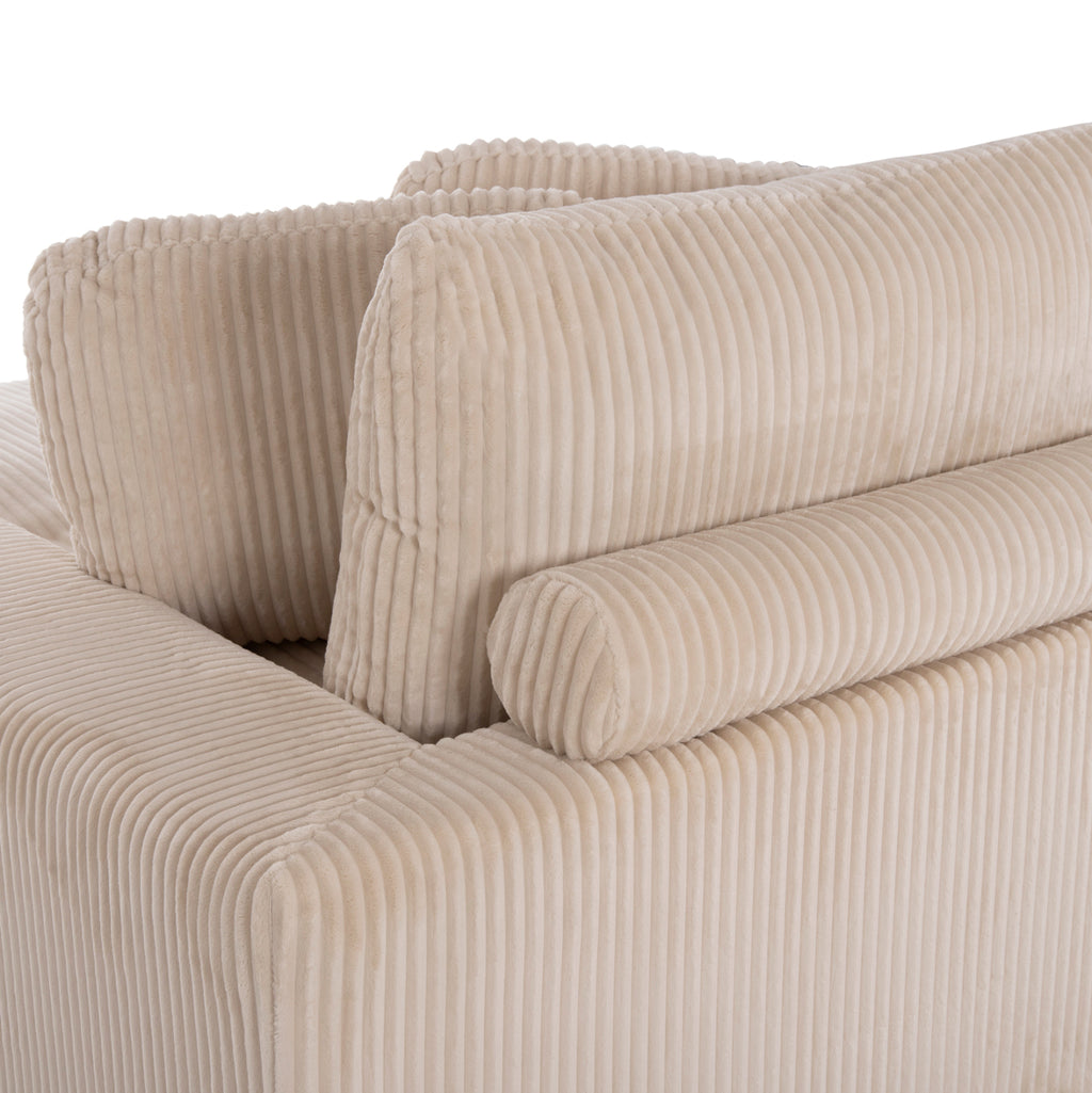 CRANFIELD е голям диван с правоъгълна конфигурация (както го гледате), с ниски и широки черни крака. Доставя се с 5 придружаващи възглавници и е тапициран с красив раиран (кордурен) плат в БЕЖОВ цвят. Той е идеален избор за тези, които търсят голям и качествен диван! РАЗМЕРИ: Общи размери: 313x169(ъгъл)x80В см. Ъгъл: 113x169(дълбочина)x80В см. Средна част: 90x102(дълбочина на седалката)x80В см. Подлакътник: 110x102(дълбочина на седалката)x80В см. ПОДДРЪЖКА: Едно просто избърсване от прах и забърсване с влажна кърпа в случай на леки замърсявания е достатъчно за почистване. *Диванът се доставя несглобен във фабрична опаковка. **Цветопредаването на продукта може леко да се различава от фотографското му изображение на вашия екран.