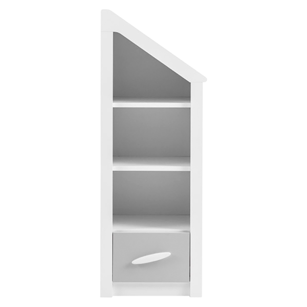 Детска етажерка за играчки WHITE HOUSE се вписва във всяка декорация,благодарение на белия си цвят и изчистен дизайн. Специално проектирана за деца, тя улеснява подреждането на стаята след игра, като същевременно предлага забавление и организиране на предметите вътре. Рафтовете издържат до 25 кг и са проектирани да бъдат сваляеми и монтирани според нуждите, което добавя гъвкавост при съхранението на играчки и други предмети. Чекмеджето, изработено от 18 мм и 8 мм ПДЧ, също издржа до 25 кг и предлага тиха и безопасна употреба със своята спирачна релсова система. Здравата и издръжлива дръжка от ABS материал, допълва функционалността на етажерката.