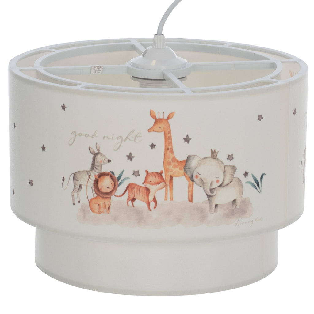 Вярваме, че осветлението и осветителните тела са бижутата на вашия дом. Както човек иска да изрази себе си чрез своите бижута, така и ние вярваме, че къщата придобива своя собствена индивидуалност чрез осветлението, което естествено отразява психологията и личността на своя собственик. Ето защо осветлението е елементът, който лесно може да се променя в една къща, следвайки настроението или посоката на собственика. BALOO със своя двоен плат "барабан", следователно, независимо дали е ден или нощ, независимо дали е включен или изключен, предлага на вашето пространство моментално стилистично надграждане. Точно когато си помислихте, че нашата и вашата любов към всичко, свързано с текстила, не може да достигне нови граници, се появиха тези плафониери. Структурата на тъканта може да е малко необичайна за висяща лампа, но придава на светлината привлекателна светлина. Детската стая на вашия дом придобива по-закачлив облик с цветните фигури на животни в цилиндричния „барабан“ на лампата, които магнетизират погледа на малки и големи, променяйки психологията на момента. ТЕХНИЧЕСКИ ХАРАКТЕРИСТИКИ: Тип цокъл на лампата: E27 Нормален цокъл Тип на лампата: Препоръчителна LED до 20w- Максимална 60w Размери на барабана: 30x20см. (обща) Обща височина: 70 см. Предлага се със CE сертификат. МАТЕРИАЛИ НА КОНСТРУКЦИЯТА: Барабаните се състоят от щампован плат върху PVC повърхност за равномерно "полагане" на плата. Рамката на лампата е изработена от полиетилен. ПОДДРЪЖКА: Лампата не се нуждае от специална поддръжка. Достатъчно е почистване на прах на редовни интервали. ПРЕДИМСТВА: Естетическото превъзходство на тази лампа ще я накара да се открои във вашето пространство, защото има опростен, но закачлив външен вид. Децата ще го гледат с удоволствие и няма да откъснат очи от него. Резултатът е изключително елегантен на вид и за това спомага преобладаващият бял цвят. Успява да съчетае атрактивен и модерен чар с идеалния размер, като по този начин добавя красива декорация към вашия таван. Неговата регулируема височина може да предложи различни нива на яркост и визуално удоволствие. Детската стая ще се превърне в любимото място на вашето дете.