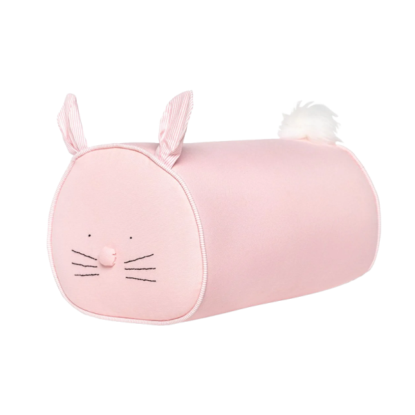 Очарователна и мека възглавница във формата на зайче – перфектният спътник за сън и гушкане в детската стая. Изработена от розова материя (70% памук, 30% полиестер) с водо- и петноустойчив 28 DNS дунапрен и плътен блоков пълнеж. Външният калъф е с цип и може да се сваля, а фините детайли като плюшената опашка, ламе нослето и бродираното личице добавят чар и стил. Апликациите са ръчно извезани. Не се пере в пералня. Препоръчва се ръчно пране в студена вода или химическо чистене. Да не се използват избелващи препарати.