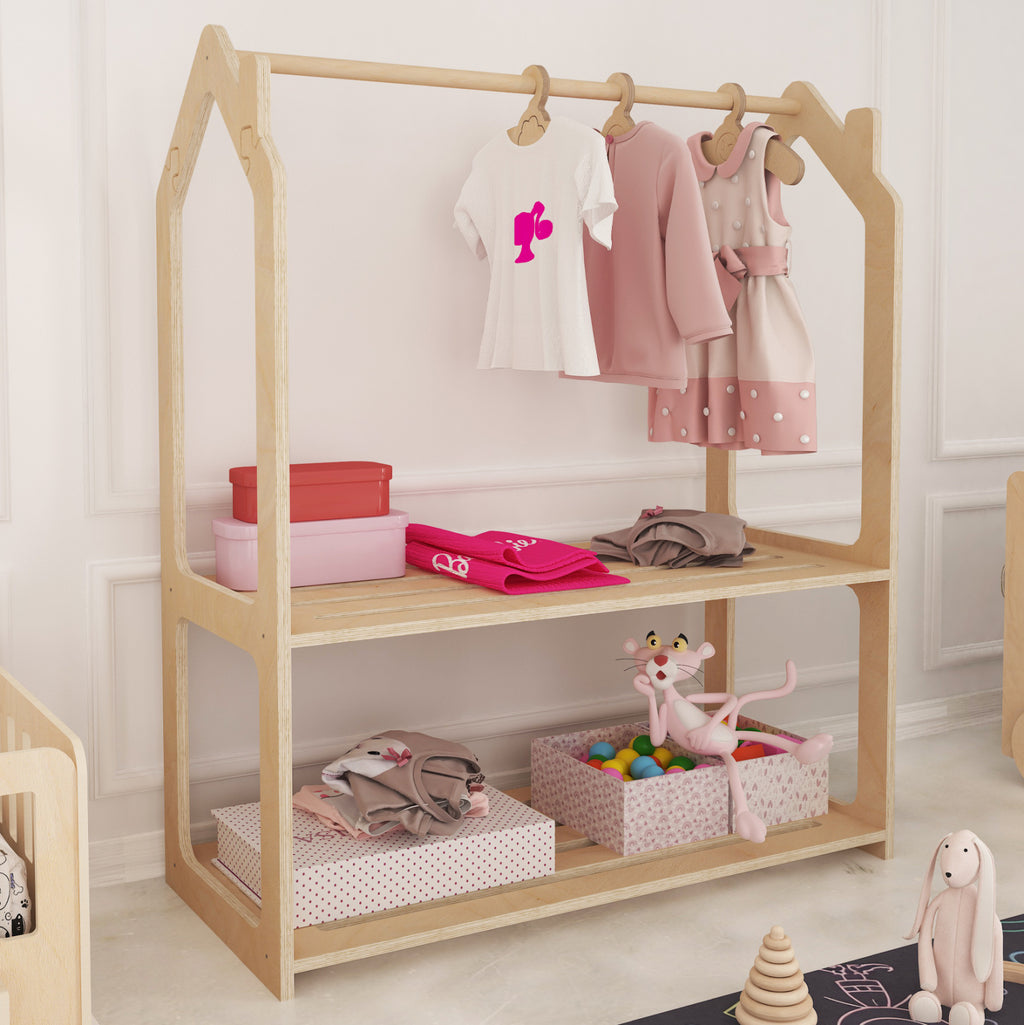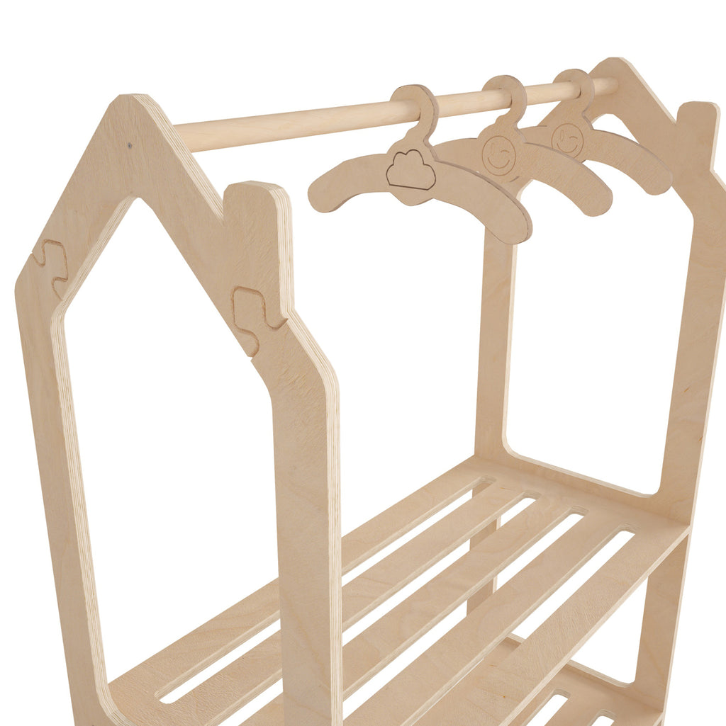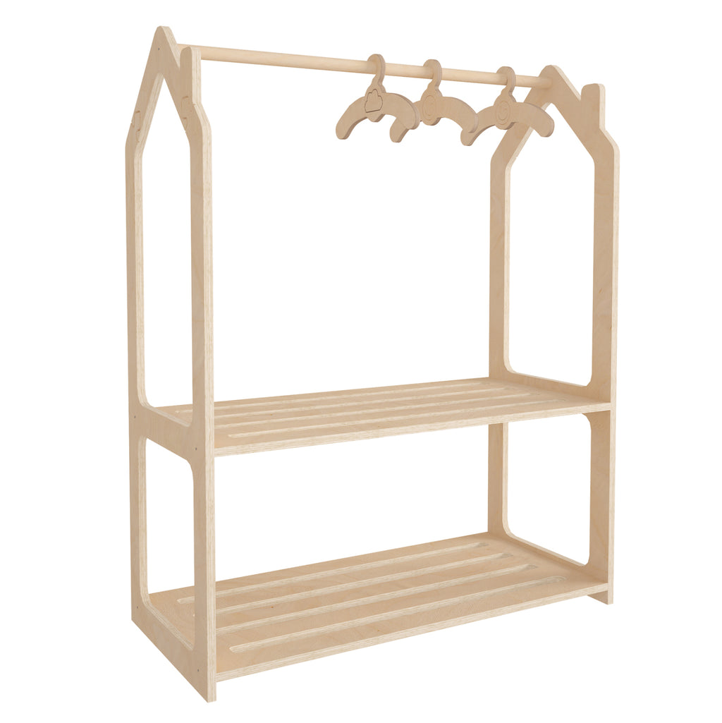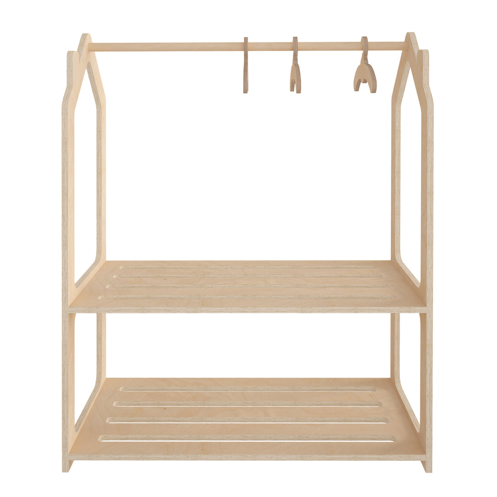 Детската закачалка от серията мебели SANI дойде, за да улесни живота ви в детската стая. Изработена е от брезова дървесина в ЕСТЕСТВЕН цвят и това, което децата ще харесат е нейният дизайн във формата на къщичка. Има 2 дълги рафта, а релсата за закачалки е разположена точно отгоре. Мебел, която ще обикнете от пръв поглед! РАЗМЕРИ: Общо: 86x49x110H см. МАТЕРИАЛИ НА ИЗРАБОТКА: Цялата мебел е изработена от бреза с дебелина 15мм. Брезата е тежко дърво, твърдо и удароустойчиво. ПОДДРЪЖКА: Брезата, която е строителният материал, се почиства много лесно от петна благодарение на твърдата си повърхност. Можете да избършете всички повърхности с влажна кърпа и това е достатъчно. За упорити петна можете да използвате мек почистващ препарат. КАКВО НИ ХАРЕСВА: •Стабилна конструкция •Красив дизайн •Практичност •Готовност за доставка *Продуктът се предлага разглобен във фабрична опаковка. ** Цветопредаването на продукта може леко да се различава от неговото фотографско представяне на вашия екран.