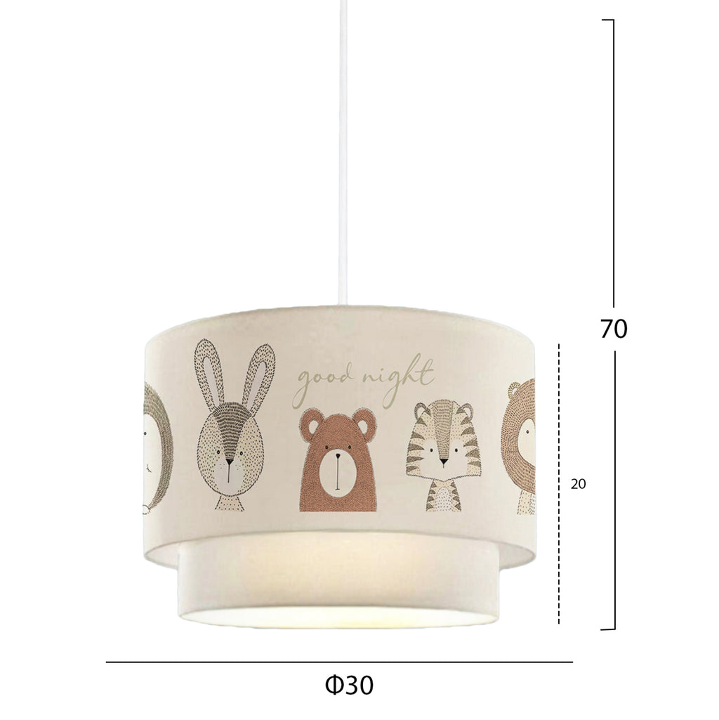 Вярваме, че осветлението и осветителните тела са бижутата на вашия дом. Както човек иска да изрази себе си чрез своите бижута, така и ние вярваме, че къщата придобива своя собствена индивидуалност чрез осветлението, което естествено отразява психологията и личността на своя собственик. Ето защо осветлението е елементът, който лесно може да се променя в една къща, следвайки настроението или посоката на собственика. BALOO със своя двоен плат "барабан", следователно, независимо дали е ден или нощ, независимо дали е включен или изключен, предлага на вашето пространство моментално стилистично надграждане. Точно когато си помислихте, че нашата и вашата любов към всичко, свързано с текстила, не може да достигне нови граници, се появиха тези плафониери. Структурата на тъканта може да е малко необичайна за висяща лампа, но придава на светлината привлекателна светлина. Детската стая на вашия дом придобива по-закачлив вид с цветните животински лица в цилиндричния "барабан" на светлината, привличащи погледите на малки и големи, променяйки психологията на момента. ТЕХНИЧЕСКИ ХАРАКТЕРИСТИКИ: Тип цокъл на лампата: E27 Нормален цокъл Тип на лампата: Препоръчителна LED до 20w- Максимална 60w Размери на барабана: 30x20см. (обща) Обща височина: 70 см. Предлага се със CE сертификат. МАТЕРИАЛИ НА КОНСТРУКЦИЯТА: Барабаните се състоят от щампован плат върху PVC повърхност за равномерно "полагане" на плата. Рамката на лампата е изработена от полиетилен. ПОДДРЪЖКА: Лампата не се нуждае от специална поддръжка. Достатъчно е почистване на прах на редовни интервали. ПРЕДИМСТВА: Естетическото превъзходство на тази лампа ще я накара да се открои във вашето пространство, защото има опростен, но закачлив външен вид. Децата ще го гледат с удоволствие и няма да откъснат очи от него. Резултатът е изключително елегантен на вид и за това спомага преобладаващият бял цвят. Успява да съчетае атрактивен и модерен чар с идеалния размер, като по този начин добавя красива декорация към вашия таван. Неговата регулируема височина може да предложи различни нива на яркост и визуално удоволствие. Детската стая ще се превърне в любимото място на вашето дете.