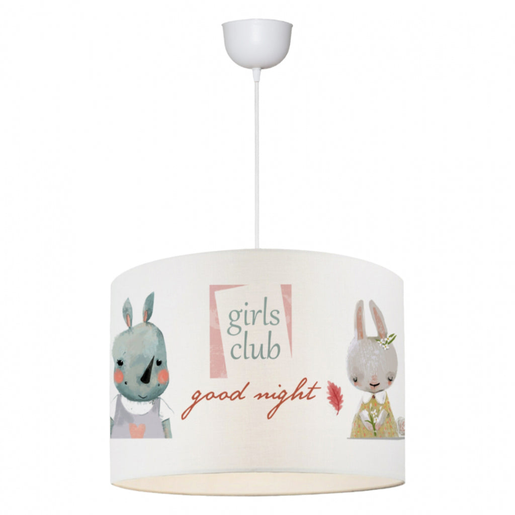 Детски плафон, плат, в бял абажур, с дизайн Girls Club. Лампа с отлично качество, с детски фигури, която ще обнови вашата детска стая. Размери: Φ28x70Y см. Височина на шапката: 21см. Приема крушка Е27 до 60W, която не е включена в комплекта. Европейско производство и произход. Продуктът се предлага във фабрична опаковка.