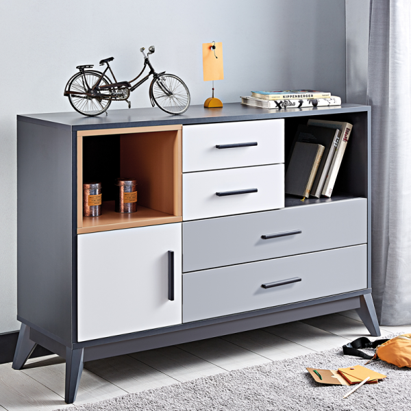 Детският скрин BREDA е практично и стилно решение за организиране на дрехи и аксесоари в детската стая. Със своя модерен дизайн и компактни размери, той разполага с четири просторни чекмеджета и едно шкафче, осигуряващи достатъчно място за съхранение. Оборудван с механизъм за плавно затваряне, скринът гарантира безопасност и тишина при употреба. Изработен от висококачествени материали, които гарантират здравина и дълготрайност.
