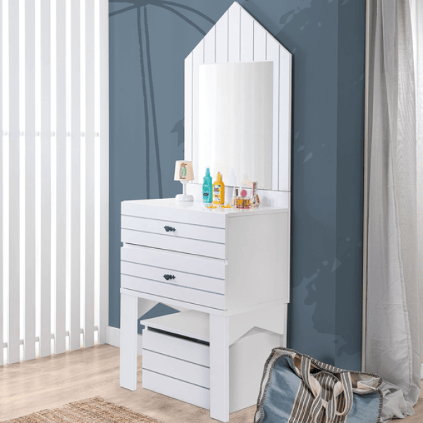 Открийте перфектната комбинация от стил и удобство с детския скрин MIAMI – изработен от здраво 18 мм ПДЧ, той пленява с изчистена естетика и практичност. Двете просторни чекмеджета с механизъм за плавно затваряне осигуряват тих и сигурен достъп до дрешките. Скринът е изключително универсален: превърнете го в тоалетка заедно с огледалото от серията или добавете под него шкаф за играчки MIAMI за още повече ред и организация в детската стая.