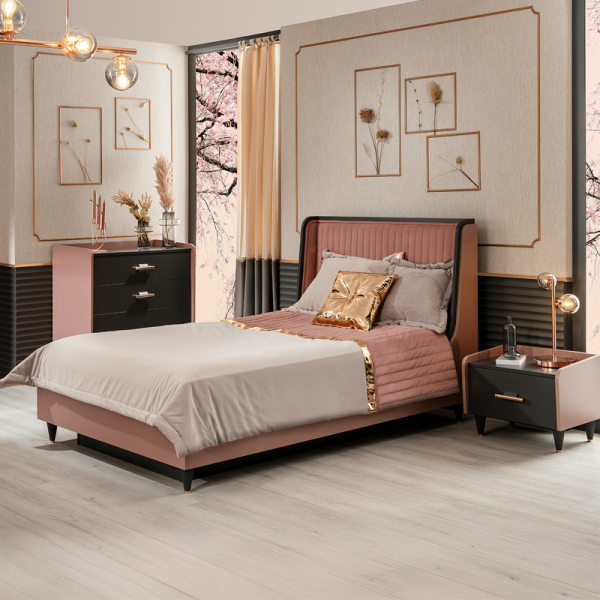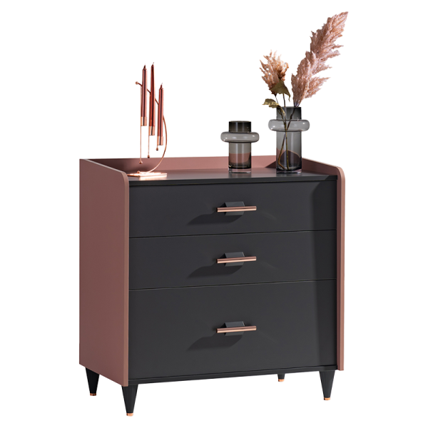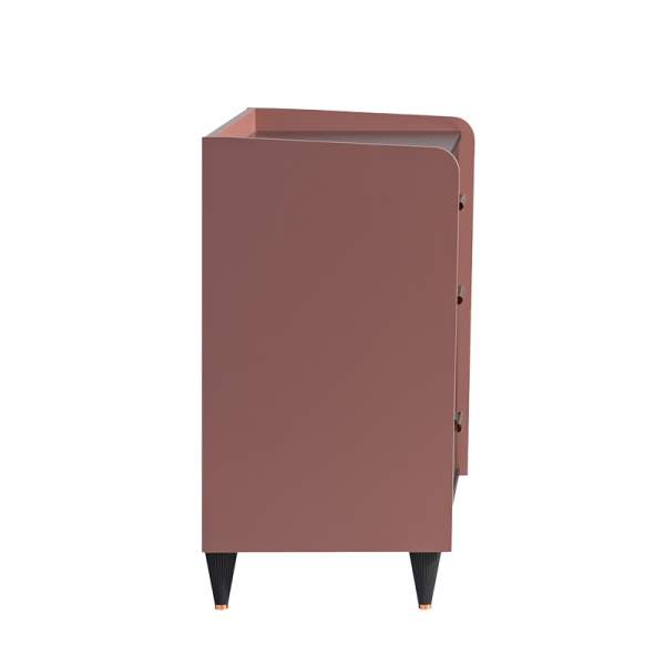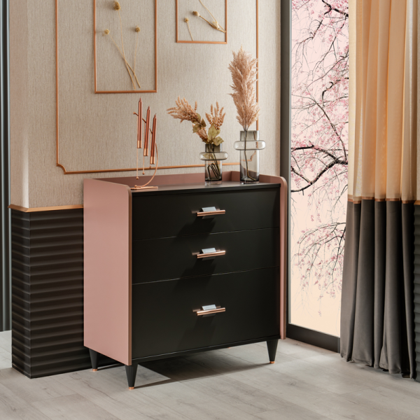 Детски скрин за дрехи VALENCIA впечатлява с изискан дизайн и практична функционалност. Моделът разполага с три чекмеджета, като долното е по-дълбоко и осигурява повече място за по-обемни дрехи или аксесоари. Чекмеджетата са оборудвани с механизъм с плавно затваряне, който осигурява тиха и безопасна употреба. Краката с височина 12 см, изработени от ABS материал с rose gold детайли, позволяват лесно почистване с робот прахосмукачка. Конструкцията е от висококачествен 18 mm материал, който гарантира стабилност, дълготрайност и безопасност при ежедневна употреба.