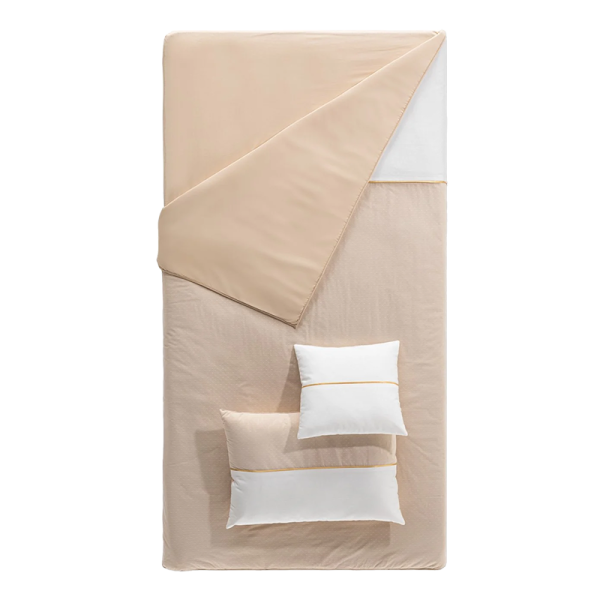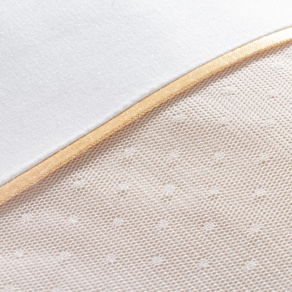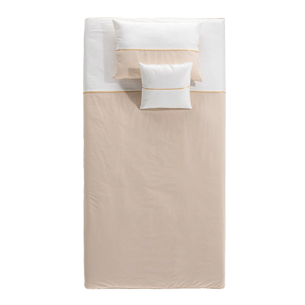 Детски спален комплект NIL се откроява с елегантни и стилни златни детайли. Включва шалте с размер 150х200 см, чаршаф с размер 152х252 см, малка възглавница с размер 42х42 см, голяма възглавница с размер 50х70 см. Шалтето и чаршафът съдържат 100% памук, възглавниците са със силиконов пълнеж. В продуктите са използвани антибактериални, антиалергични и антиканцерогенни материали. Препоръчва се химическо чистене за възглавниците и шалтето, докато чаршафът може да се пере в пералня.