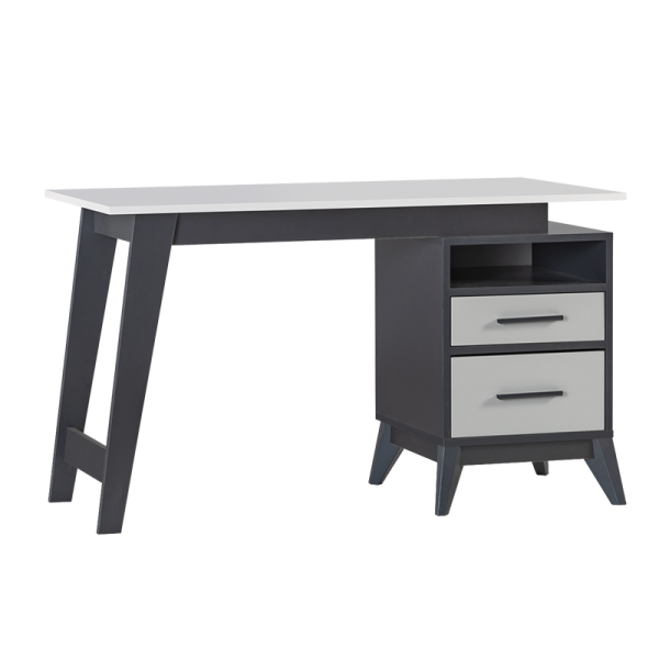 Дизайн, разпалващ въображението Младите хора харесват различните и нестандартните неща, ето защо бюро BREDA със сигурност ще им хареса. Модерната визия на бюрото и комбинацията от бяло и антрацит го правят отличен избор за юношески стаи, предлагайки както стил, така и функционалност. Неговият раздвижен дизайн внася свежест и енергия в интериора, разпалва въображението и стимулира ученето. Бюро BREDA е създадено с мисъл за модерния тийнейджър, който се нуждае от удобно и добре организирано пространство за своите дейности. Плотът с размери 127х60 см предлага просторно място за разнообразни занимания, съчетавайки практичност и стил в едно. Модул с рафт и две функционални чекмеджета, който може да бъде монтиран по избор вдясно или вляво, осигурява място за учебни пособия и канцеларски материали. Елегантните крака, разположените под наклон се грижат за стабилността на бюрото и комфорта на седящия. |