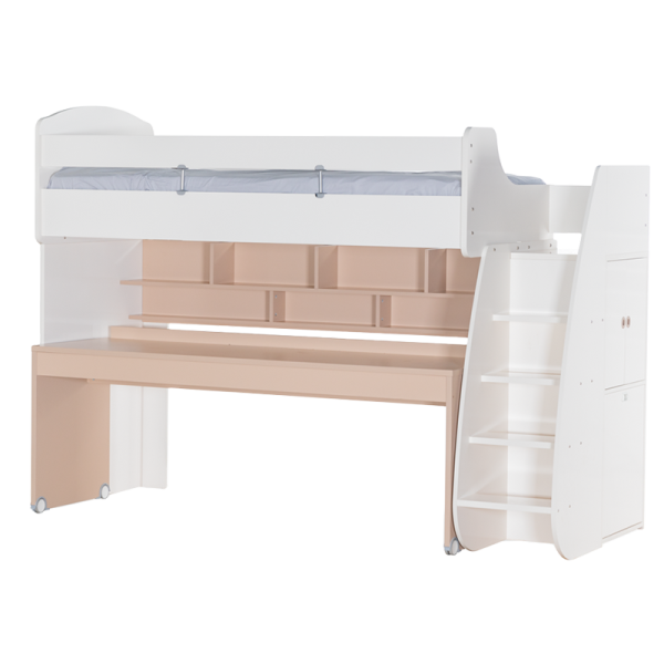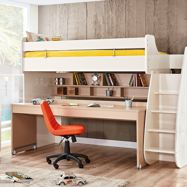 Перфектна комбинация JOYIN е проектирано така, че да се интегрира безупречно с останалите елементи от серията. В комбинация с малкото легло на колелца JOYIN 90х190 и голямото JOYIN 90х200, то предлага практично решение за оптимизация на пространството. Голямото легло събира малкото и бюрото под себе си, създавайки компактен и функционален кът за спане, учене и игра. Така всеки сантиметър от стаята се използва ефективно – подходящ избор за семейства, които търсят практичност и стил в едно. |