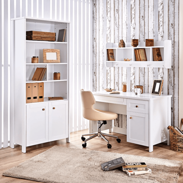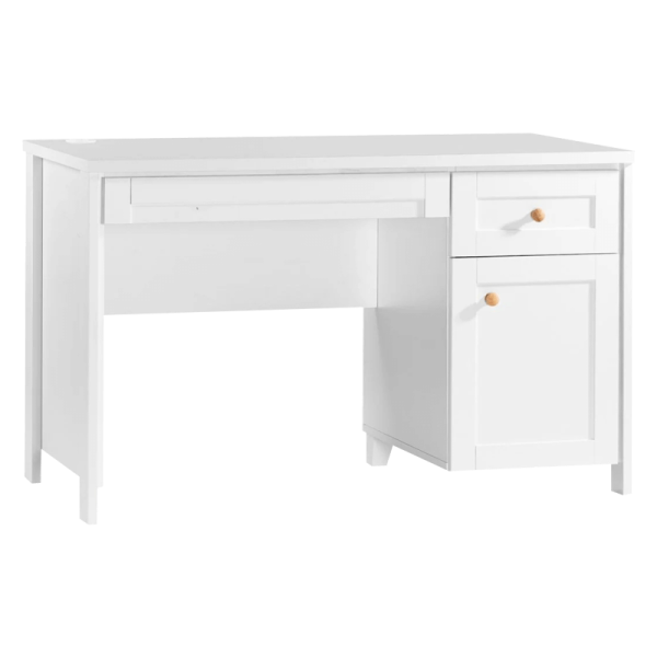 Детско бюро OSLO предлага модерна визия и удобства, съобразени със съвременния начин на работа и учене. Изработено от висококачествени материали – плоскости с дебелина 18–25 мм и MDF профили 22 мм – моделът осигурява стабилност, дълготрайност и безопасност при ежедневна употреба. Бюрото е оборудвано с вграден USB захранващ модул, който улеснява зареждането и използването на мобилни устройства директно на работния плот. Чекмеджетата и вратите са с плавно затваряне, а при по-тясното чекмедже е използван телескопичен механизъм за по-голяма стабилност и плавност на движение. Металните дръжки осигуряват здравина и комфорт, а крачетата с височина 8 см позволяват лесно почистване с робот-прахосмукачка.