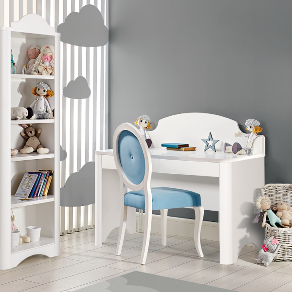 Детско бюро PORI предлага идеалната среда за малките изследователи да развиват своите умения и креативност в удобна и функционална обстановка. Със своя ярко бял цвят и стилен дизайн, бюрото внася свежест и жизненост във всяка детска стая. Големите чекмеджета са перфектни за съхранение на книги, художествени материали и ученически пособия, като същевременно поддържат ред и организация на детското работно пространство. Проектирано с мисъл за децата, детско бюро PORI е на удобна височина и разполага със заоблени ръбове, които гарантират безопасна употреба. Децата могат лесно да достигнат до своите материали и да се отдадат на учене, рисуване или четене на любими книги. Вградената USB станция улеснява работата с мобилни устройства, което прави бюрото още по-функционално и подходящо за съвременните нужди на децата. Чекмеджетата са оборудвани с телескопична релсова система, която осигурява лесен достъп до дъното и максимално оползотворяване на пространството.