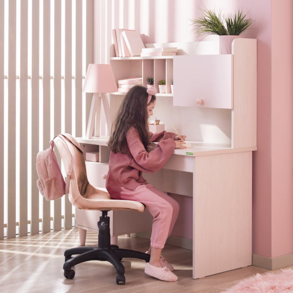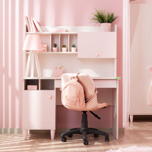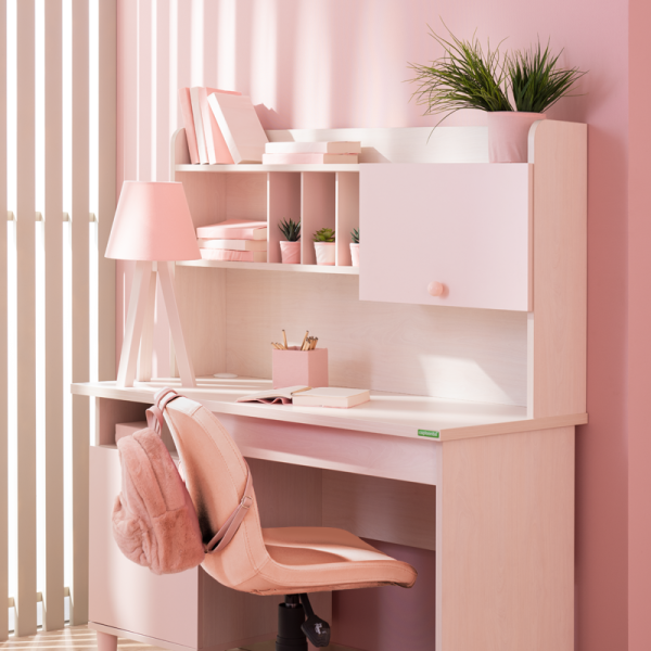 Детско бюро с етажерка POLLINA е създадено за учене, рисуване и игри, като предлага идеално място за работа и забавление. Плотът е декориран с ярки цветове и забавни мотиви, а USB станцията улеснява работата с мобилни устройства. Бюрото разполага с рафтове и отделения с врати, които помагат за поддържане на ред и организация и се затварят безопасно и безшумно. Това го прави перфектен избор за всяка детска стая, съчетавайки функционалност и весел дизайн.