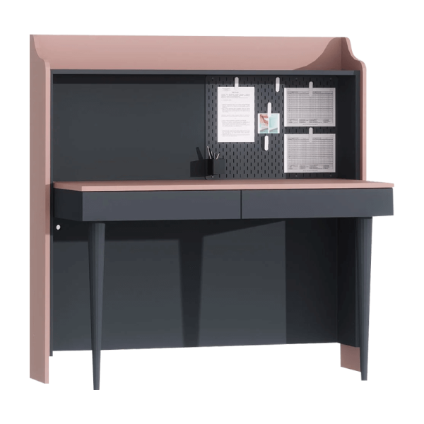 Бюрото с надстройка VALENCIA внася модерен и елегантен стил в стаята на всяко момиче. Със своите пастелни тонове и тъмни детайли, то съчетава функционалност и изисканост. Двете широки чекмеджета предлагат място за организиране на лични вещи, а паното на плота е идеално за поставяне на мотивационни бележки и снимки. Това бюро не е само пространство за учене, но и стилен акцент, който ще добави изящество и удобство на всяка младежка стая.