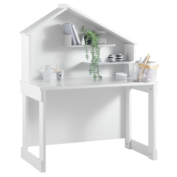 Детско бюро WHITE HOUSE ще зарадва всеки малчуган със своята интересна форма. То разполага с просторен плот за учене, рисуване и игра. Двата по-малки рафта са идеални за организиране на книги, играчки и учебници. Изработено от ПДЧ с дебелина 18 мм бюрото е издръжливо и стабилно. Моделът е снабден с USB и Type C портове, които позволяват на детето да зарежда директно в тях мобилните си устройства.