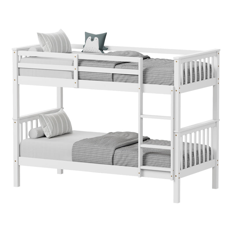- Оборудван със стълба за достъп и защитни парапети около горното легло.