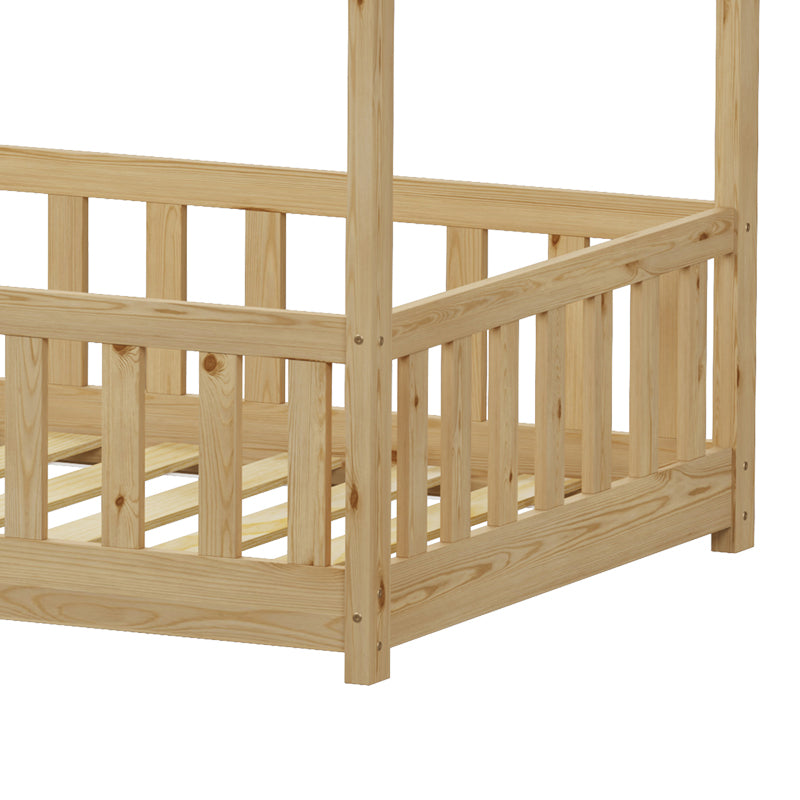 Леглото Callan Montessori с релси предлага модерен, вдъхновен дизайн с чисти линии, които създават топла и приветлива атмосфера, което го прави идеално за всяка детска стая. Покривната функция добавя закачлив елемент, превръщайки леглото в уютно скривалище за деца.