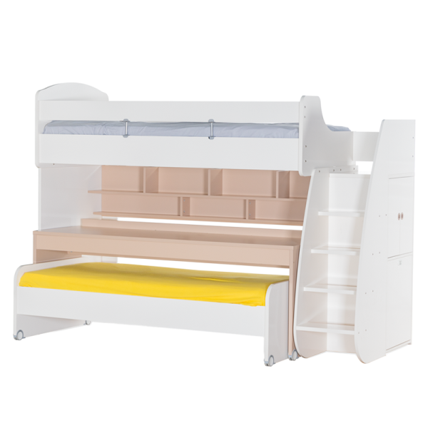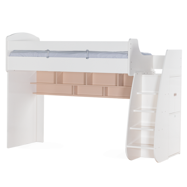 Допълнително пространство за съхранение Една от основните характеристики на модела е умело интегрираното пространство за съхранение, което улеснява организацията на детската стая. Вградените стълби от дясната страна на леглото крият тайна: два големи шкафа. Вратичките са с плавно затваряне за допълнителна безопасност, а отделенията стават идеално място за съхранение на играчки, книги, дрехи и други вещи, които често се разпръскват из стаята. Така децата лесно ще намират своите любими предмети и ще се научат да подреждат. |