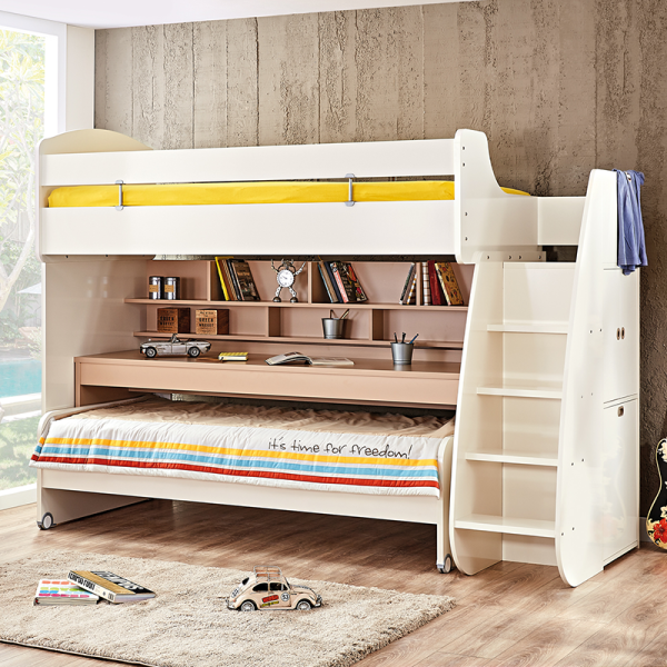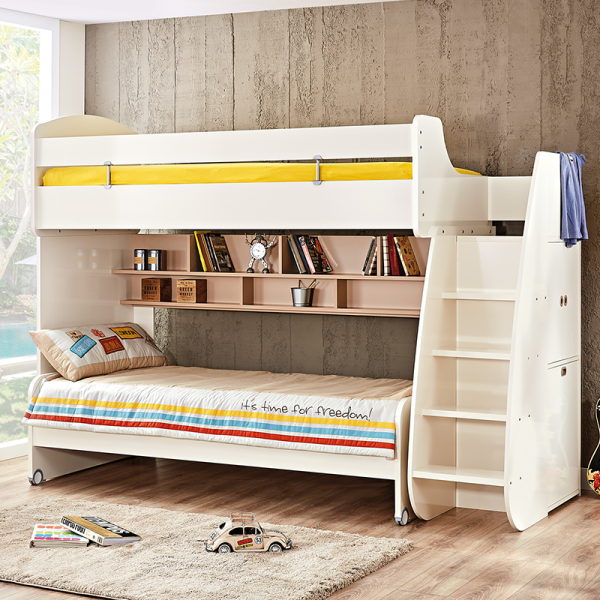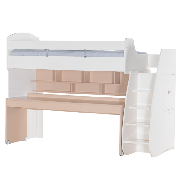 Детско легло JOYIN – комбинацията между иновация и креативност JOYIN е мебел, която съчетава модерен дизайн, иновативна идея и изключителен комфорт. Проектирано като така актуалните в момента “тавански легла”, моделът предлага интересно визуално решение, което веднага привлича вниманието. Неговата компактна и функционална конструкция включва вградени стълби и етажерка и достатъчно място под самата мебел, за да създаде уютно пространство за всякакви детски дейности – от качествен сън до забавни игри. Елегантната цветова гама допринася за универсалността на леглото и визията, която лесно се вписва във всяка детска стая. Преградата осигурява допълнителна безопасност и гарантира, че децата ще се чувстват защитени и спокойни по време на сън. |