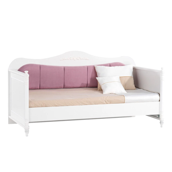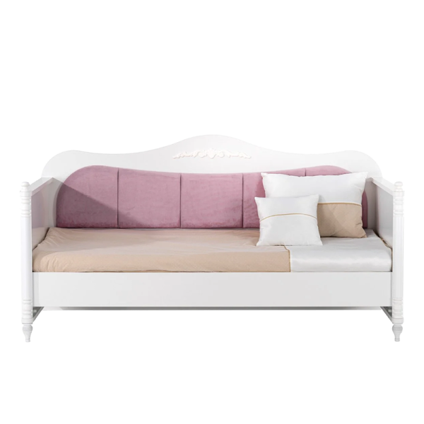 Изтънчен лукс и младежка елегантност Детското легло NIL е с елегантен дизайн, вдъхновен от бароковия стил в обзавеждането. То съчетава класически елементи на барока с модерни решения, предлагайки комфорт и функционалност. Неговата висока странична табла с елегантни орнаменти, извити форми и фина изработка придава на леглото аристократична нотка, сякаш взаимствана от покоите на кралска особа. Розовата нежна тапицерия, с която е покрита таблата, създава усещане за уют и класа с кадифената си мекота. |