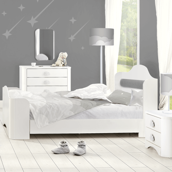 Детско легло PORI 120 x 200 предлага комфорт, стабилност и изчистена визия, подходяща за пораснали деца и тийнейджъри. Таблата създава мека и приятна опора при облягане. Конструкцията е изработена от висококачествени материали – плоскости и MDF профили – за дълготрайна и безопасна употреба. Допълнителна централна опора в основата осигурява стабилност и предотвратява огъване при натоварване. Краката са с височина 13 см и позволяват лесно почистване с робот-прахосмукачка. Леглото издържа натоварване до 130 кг и е отлично решение за стилна и практична детска или юношеска стая.