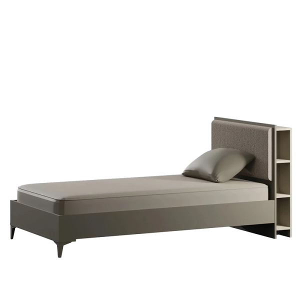Детско легло RIGA 120 x 200 е незаменима част от стаята на тийнейджъра, със своята естествена цветова палитра, солидна структура и големи места за съхранение. Произведено от първокачествено ПДЧ с дебелина 18 мм до 25 мм, това легло подчертава своето качество и надеждност. 12 см високите крачета от ABS материал, са подходящи за използване с прахосмукачка робот, улеснявайки почистването и поддържането на хигиена в стаята.