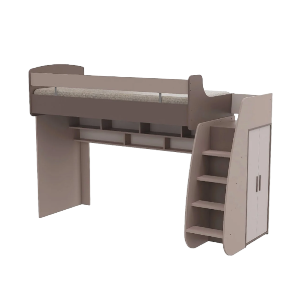 Детското легло RIGA с размери 90x200 см е практично и стилно решение за модерната детска стая. Изработено от устойчиво ламинирано ПДЧ с дебелина 18 мм, то съчетава здравина с функционален дизайн. Моделът включва подматрачна рамка, етажерка и две вградени шкафчета, които осигуряват удобно място за съхранение на книги, играчки и лични вещи. Вградената стълба и предпазната преграда допринасят за безопасността и комфорта на детето по време на ежедневна употреба.