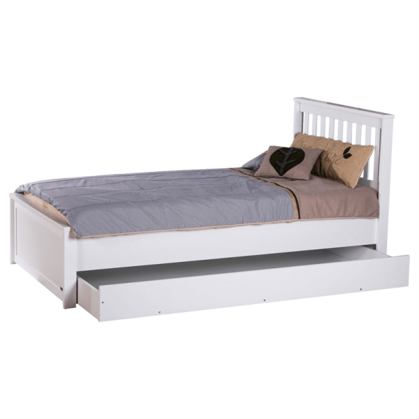 Детско легло с чекмедже OSLO 100 x 200 съчетава модерен дизайн и практична функционалност, подходяща за детска или тийнейджърска стая. Конструкцията е изработена от висококачествени материали, които осигуряват стабилност и дълготрайна употреба. Моделът разполага с функционално чекмедже на колелца, което се отваря в една посока и може да се използва както като допълнително легло за матрак 90 х 190, така и като просторно място за съхранение. Конструкцията е с товароносимост до 130 кг, което гарантира надеждност и сигурност при ежедневна употреба.