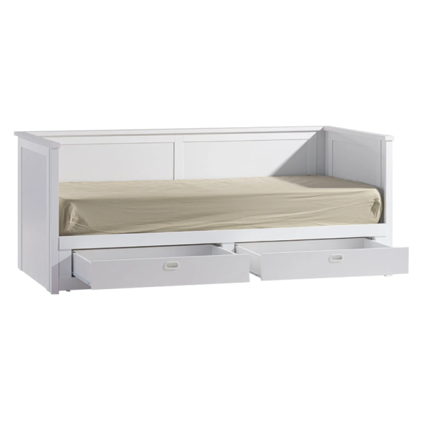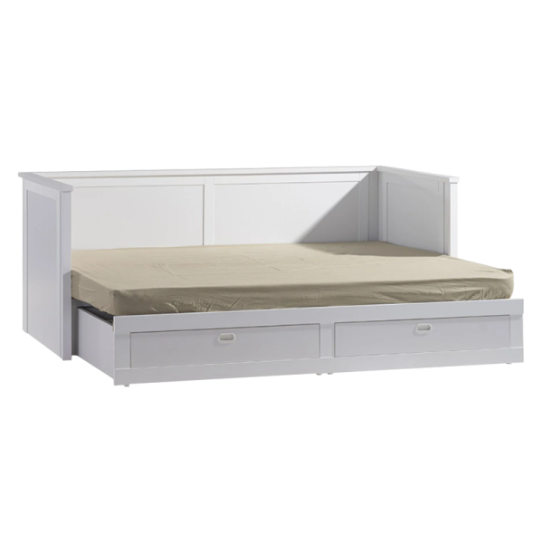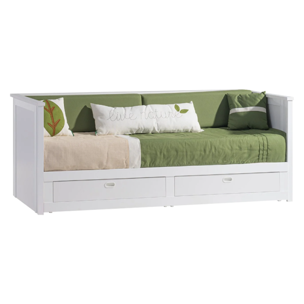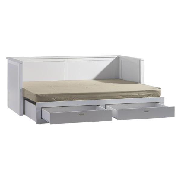 Леглото OSLO с чекмеджета е стилно и функционално решение за модерната детска стая. Благодарение на интелигентния си дизайн, то предлага удобна лежанка през деня и се трансформира в комфортно легло при нужда – идеално за гости или малки пространства. Механизмът с колелца позволява лесно разгъване, а вграденото допълнително легло се прибира компактно. Двете големи чекмеджета с вградени дръжки осигуряват практично място за съхранение на спално бельо, играчки или дрехи. Седалката може да се допълни със странични възглавници по избор, а здравата конструкция гарантира дълготрайна употреба.
