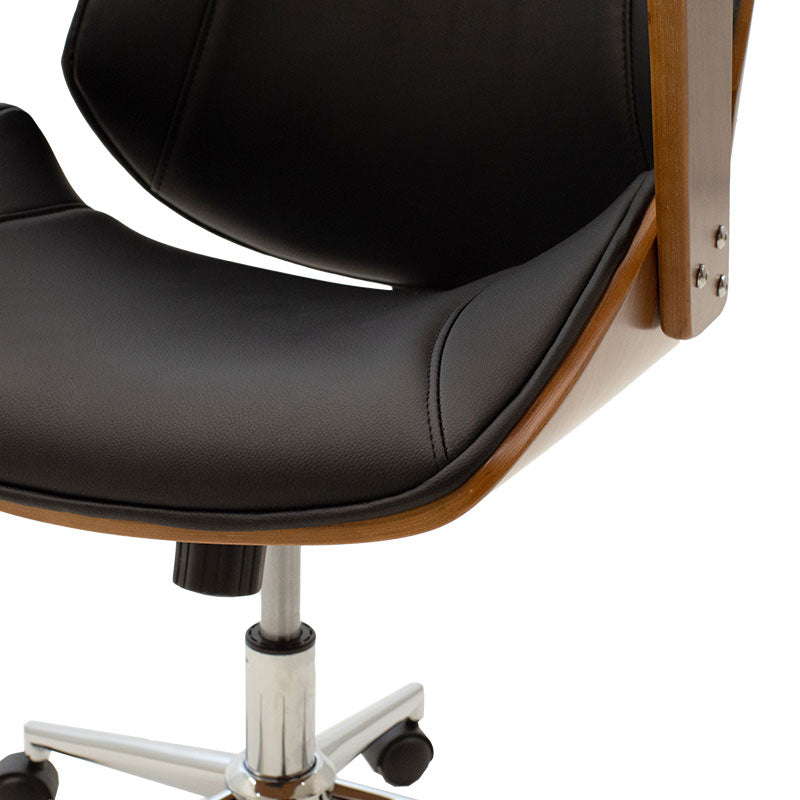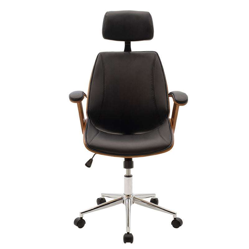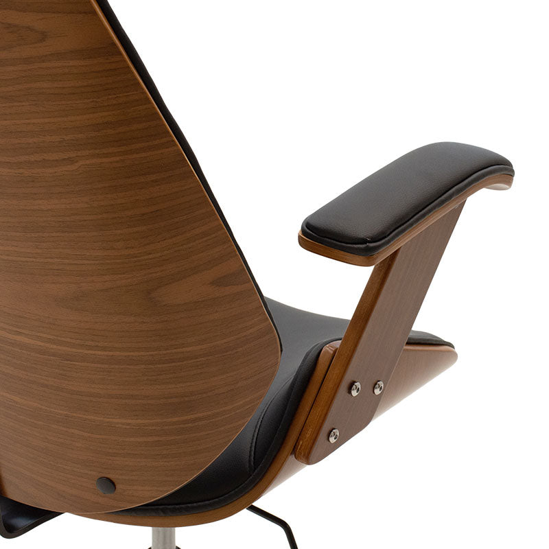 Мениджърският стол Fern е изработен с подсилена дървена рамка в цвят орех, която придава естествен и топъл акцент на дизайна. Дървената конструкция е стабилна и устойчива на износване, а металната основа с пет звезди осигурява сигурност и баланс дори при продължителна употреба.