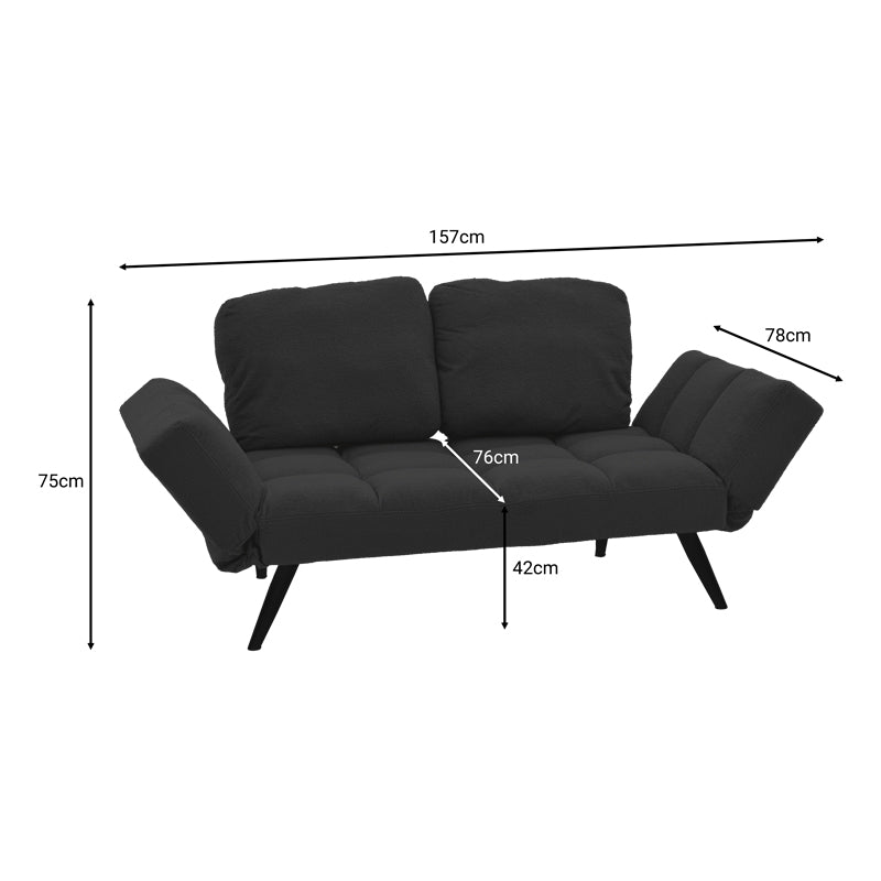 Разтегателен диван 3-местен Jackie плат антрацит-метал черен 190x78x75см