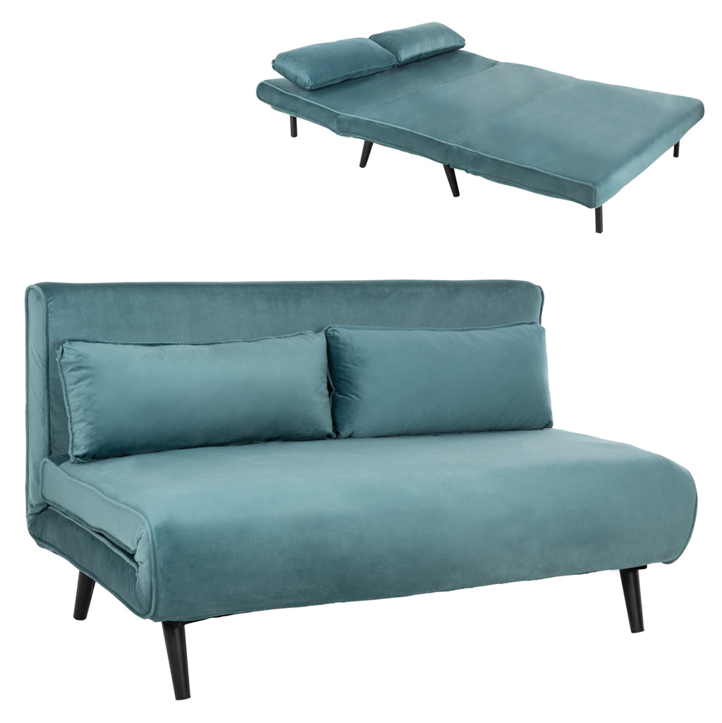 ASMA е разтегателен диван, идеален за настаняване на 2 души, тапициран с кадифена материя в нюанс MINT. Кадифето е мека, спокойна, приятна и елегантна материя. В миналото то се е изработвало главно от копринени влакна и дори с много специална обработка, която е изисквала много време и специален стан. За щастие, днес нещата са се променили и тази прекрасна материя е достъпна за всеки. Ако търсите комфорт и функционалност в мебелите си, този продукт ще ви осигури и двете. Този многофункционален диван е идеален за неочаквани гости в случай на нощувка (2 души), като същевременно осигурява удобно място за сядане. Разполага с трисекционен сгъваем механизъм и може да се превърне в легло с едно движение. Има големи възглавници и метални крака в черен нюанс. Идеален избор е за тези от вас, които търсят нещо елегантно, функционално и висококачествено. ПОДДРЪЖКА Качествените материали, използвани за изработката на дивана, го правят изключително лесен за употреба! Използвайте прахосмукачка с мека приставка и почистете внимателно кадифето. Ако има петно, леко навлажнете кърпа и разтъркайте петното много внимателно, без да прилагате натиск, защото то ще попие още по-дълбоко. За упорити петна използвайте същия метод и малко препарат за миене на съдове. Най-важното е да подсушите кадифето веднага след това със суха кърпа. Като цяло е добра идея редовно да четкате всеки кадифе, който имате, със специална четка за кадифе, за да поддържате гладката и мека повърхност. РАЗМЕРИ: 140x80x77Y см. Височина на седалката: 43 см. Размери на седалката: 140x41-61 см. Място за краката: 123x98 см. Легло: 190x140x30Y см. Място за краката: 178x95 см. Възглавници: 61x30 см. (2) Дебелина на възглавниците: 20 см. Място за краката: 18 см.