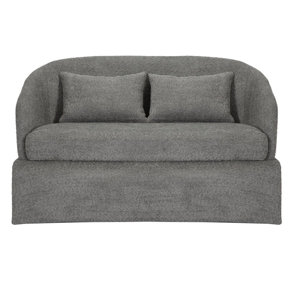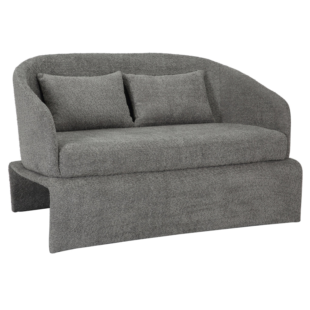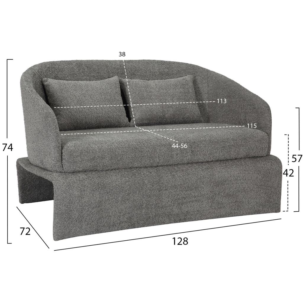 Вътрешен двуместен диван BEVY2 в СИВ цвят е модерен и отличителен. Характеристиката, която го отличава, е, че седалката с полукръгъл гръб и удобни възглавници лежи върху основа с подобна естетика. Диван, който със сигурност няма да остане незабелязан. РАЗМЕРИ: 128x72x74H см. Височина на седалката: 42 см. Височина на ръцете: 57см. Размери на седалката: 115x44-56 см. Размер на гърба: 113х38 см. Възглавница за гръб: 46x29x10 см. МАТЕРИАЛИ НА КОНСТРУКЦИЯТА: Рамката е метална с електростатично боядисване, а цялата облицовка е изработена от плат букле с отлично качество и текстура. Всяка тъкан, която има извиване на възел, се нарича букле. Изработено е от почти всички суровини (въпреки че обикновено е синтетично) със специални възли или силно усукани конци, така че да има къдрава повърхност. Не се мачка и може да бъде изчистена, меланжирана, карирана или туид. ПОДДРЪЖКА: Едно почистване с прах е достатъчно, за да поддържате дивана чист. В случай на петна, използвайте мек почистващ препарат и почистете леко с кърпа. ПРЕДИМСТВА: •Здрава метална конструкция •Красив и модерен дизайн •Съотношение цена-качество •Готовност за доставка