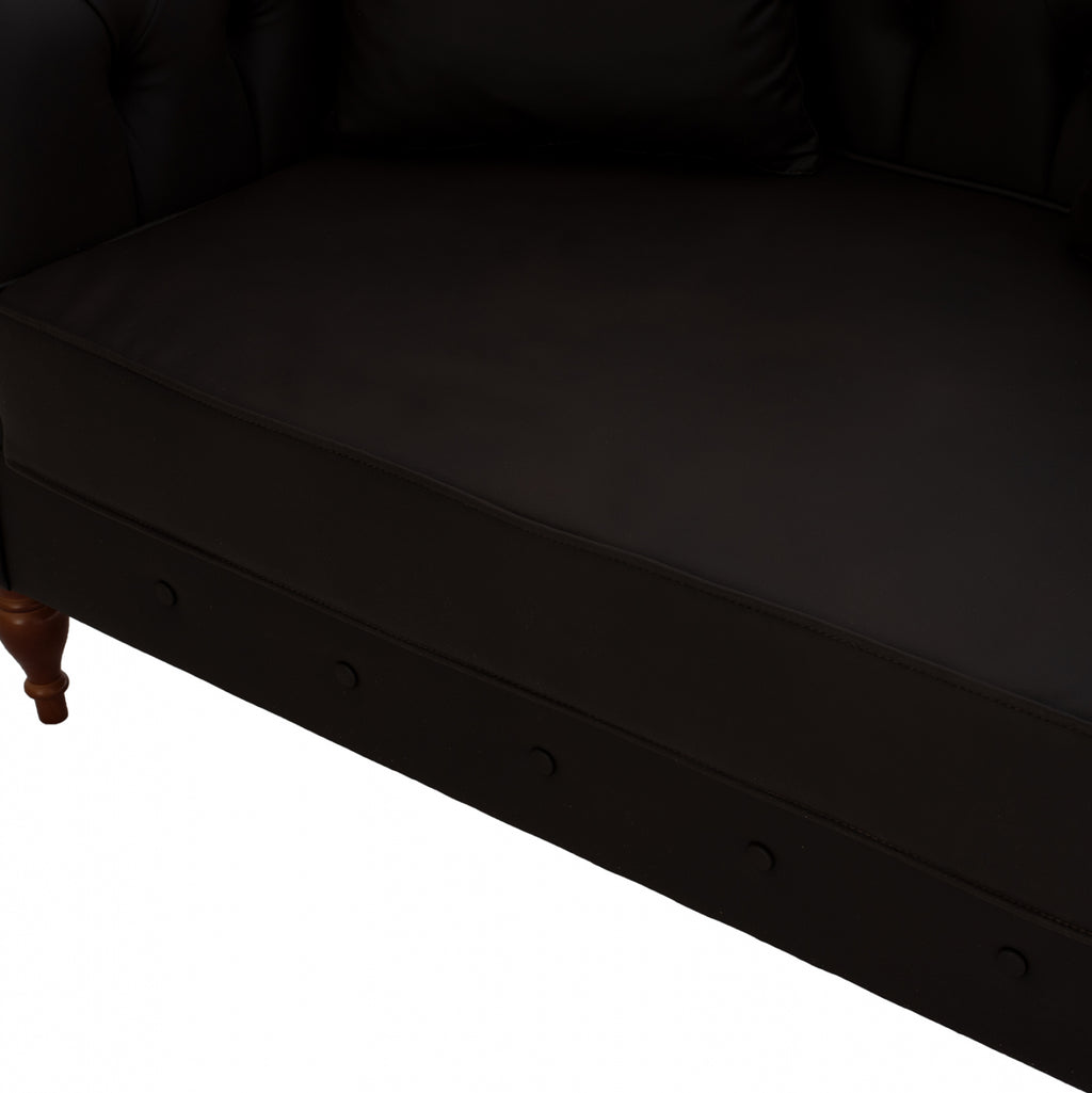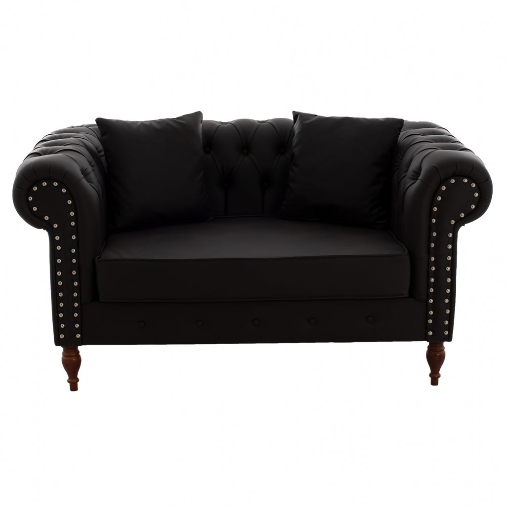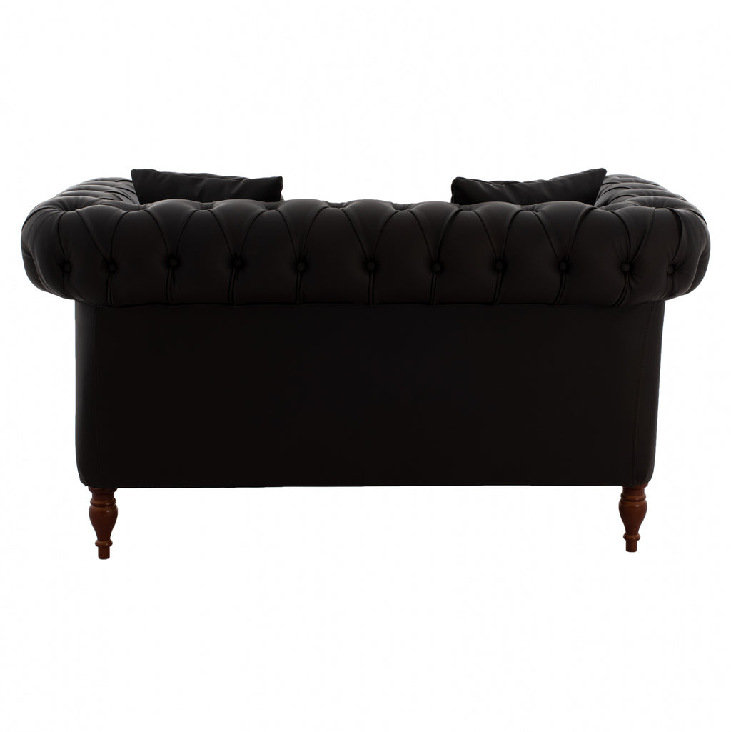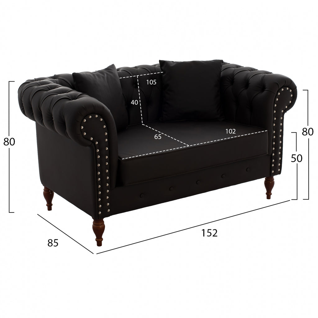 Диван Честърфийлд двуместен, с кафява изкуствена кожа 152х85х80см. Елегантен диван Chesterfield с декоративни копчета на рамката ще добави нотка лукс към вашата всекидневна. Този двуместен диван ще бъде чудесно място за чат, четене, гледане на телевизия или просто почивка. Отличаващ се с компактен, но модерен дизайн, диванът ще се впише перфектно във всеки интериор на хола. Извитите му рамена предлагат по-голям комфорт и релакс, съчетани с двете декоративни възглавници, а декоративните корита от предната страна го правят специален. Двуместният диван е тапициран с висококачествена изкуствена кожа, лесна за почистване и с подсилени дървени крака в цвят орех, които го правят особено стабилен и издръжлив. Размери: 152х85х80см. Размери на седалката: 102х65 см. Размери на гърба: 105х40см. Височина на крака: 18 см. Височина на седалката: 50см. Височина на ръцете: 80см. Европейско производство и произход. Продуктът се предлага разглобен във фабрична опаковка. (Само краката са завинтени)
