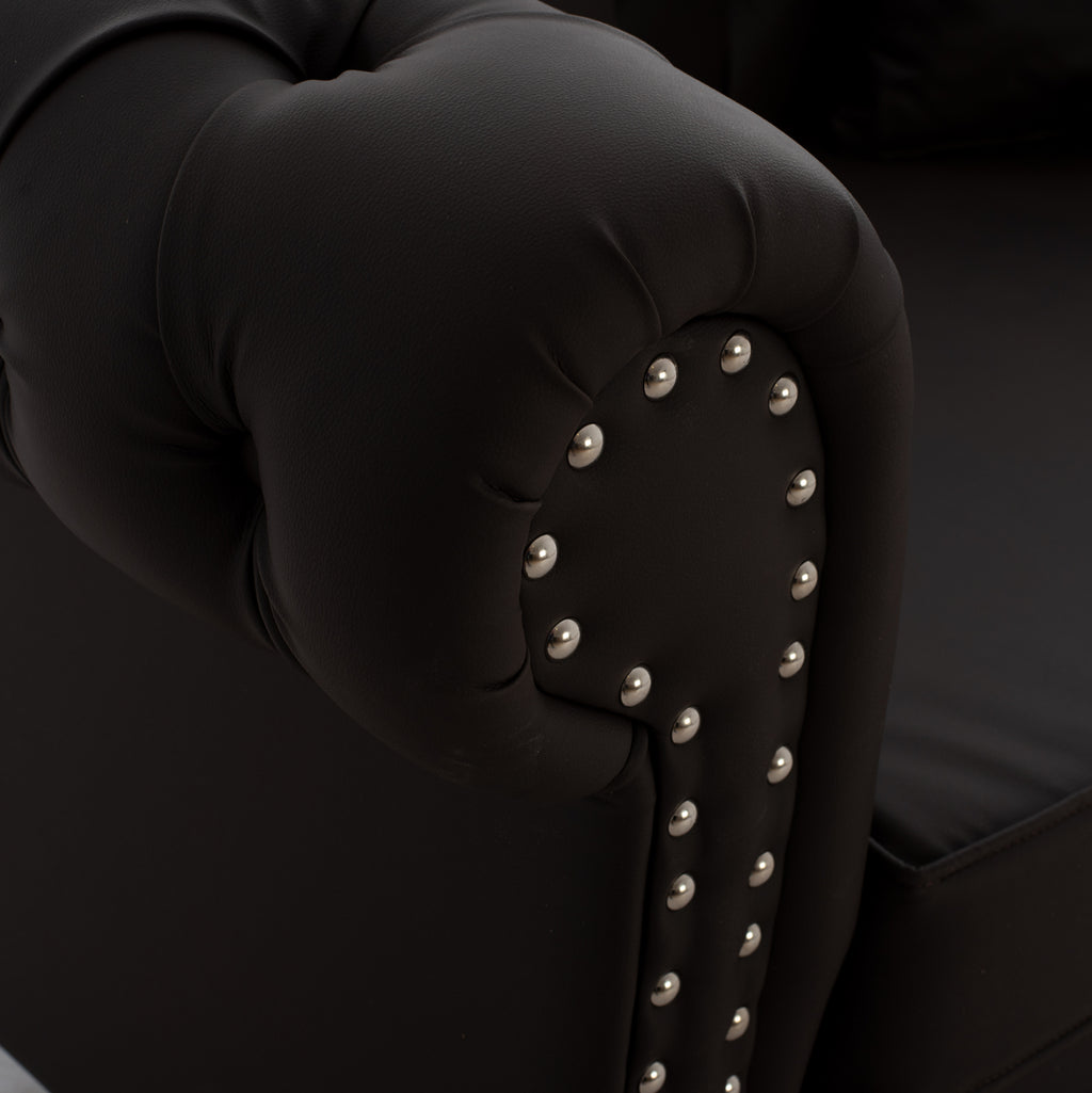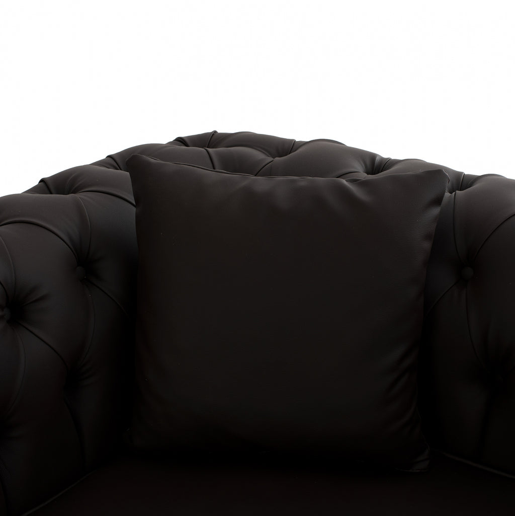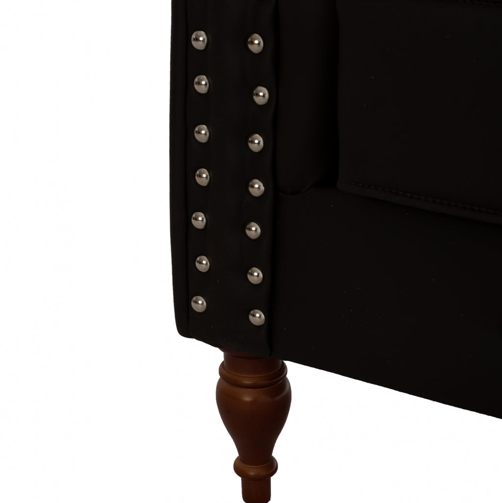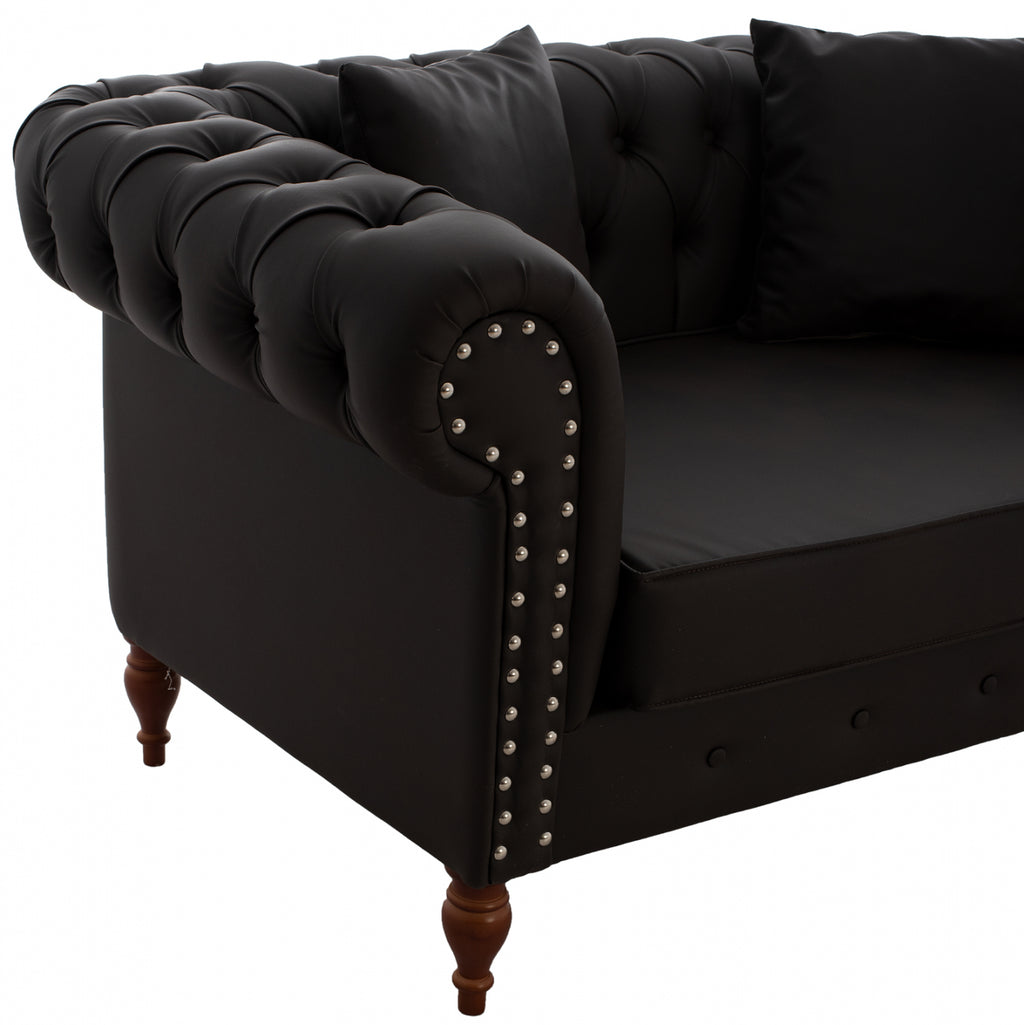 Диван Честърфийлд двуместен, с кафява изкуствена кожа 152х85х80см. Елегантен диван Chesterfield с декоративни копчета на рамката ще добави нотка лукс към вашата всекидневна. Този двуместен диван ще бъде чудесно място за чат, четене, гледане на телевизия или просто почивка. Отличаващ се с компактен, но модерен дизайн, диванът ще се впише перфектно във всеки интериор на хола. Извитите му рамена предлагат по-голям комфорт и релакс, съчетани с двете декоративни възглавници, а декоративните корита от предната страна го правят специален. Двуместният диван е тапициран с висококачествена изкуствена кожа, лесна за почистване и с подсилени дървени крака в цвят орех, които го правят особено стабилен и издръжлив. Размери: 152х85х80см. Размери на седалката: 102х65 см. Размери на гърба: 105х40см. Височина на крака: 18 см. Височина на седалката: 50см. Височина на ръцете: 80см. Европейско производство и произход. Продуктът се предлага разглобен във фабрична опаковка. (Само краката са завинтени)