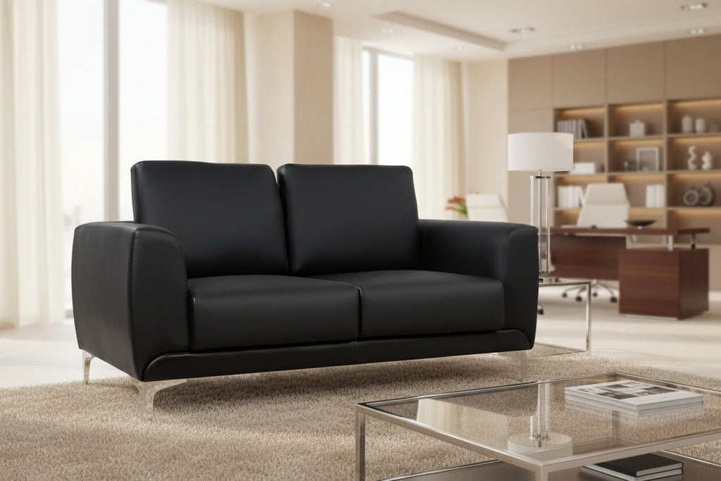 Двуместен диван Kenzie с покритие от черна изкуствена кожа, идеален за професионални пространства. Цвят: Черна изкуствена кожа