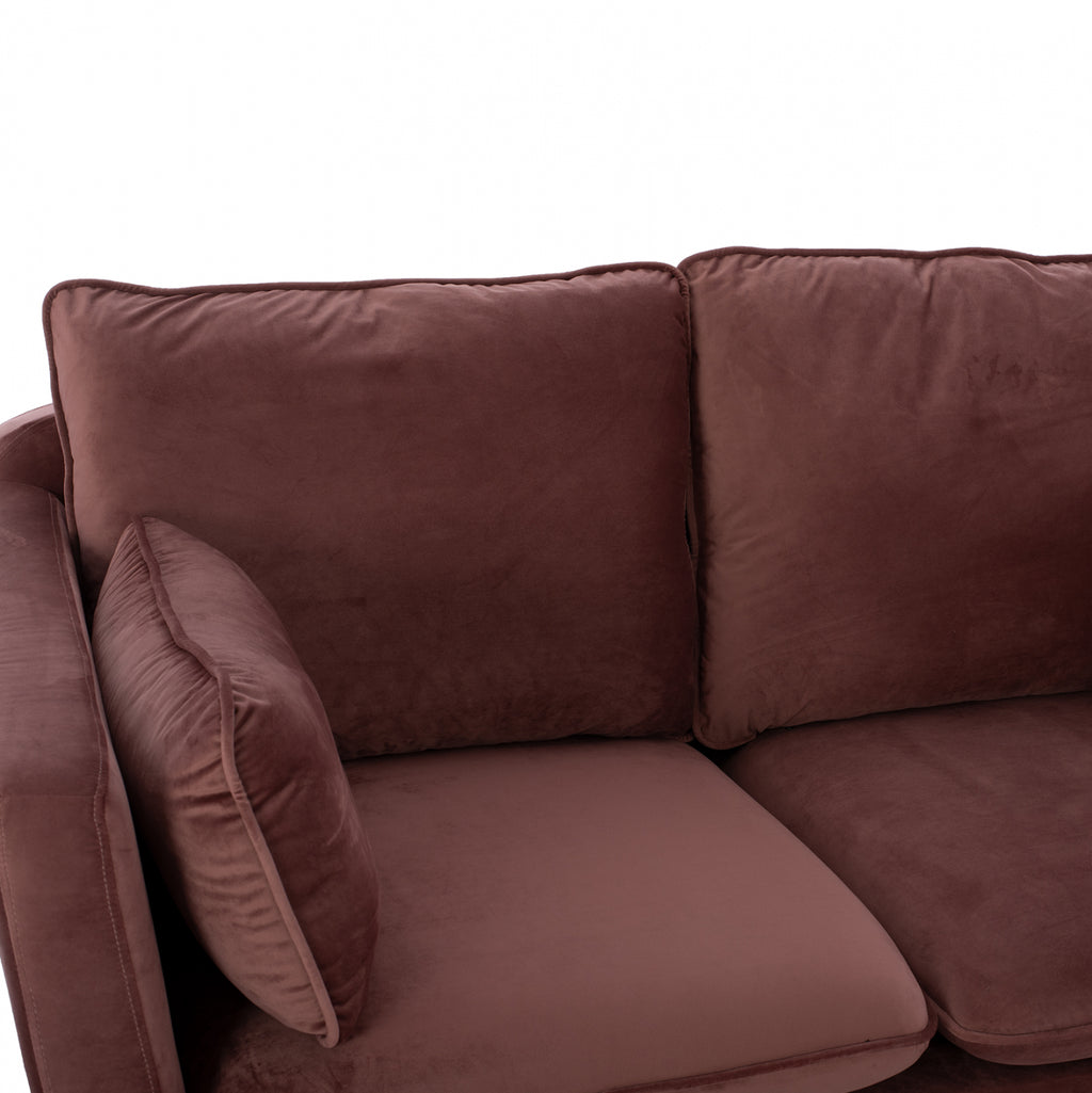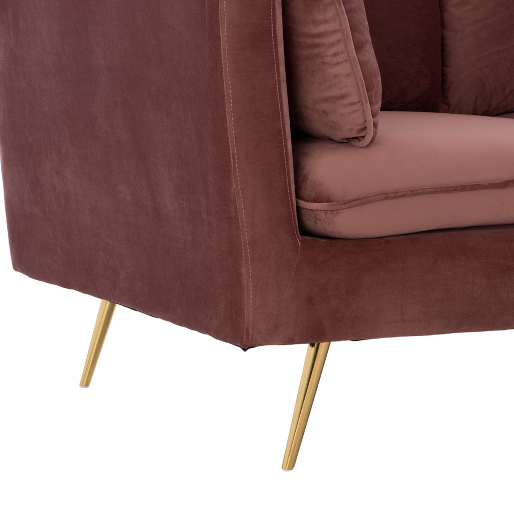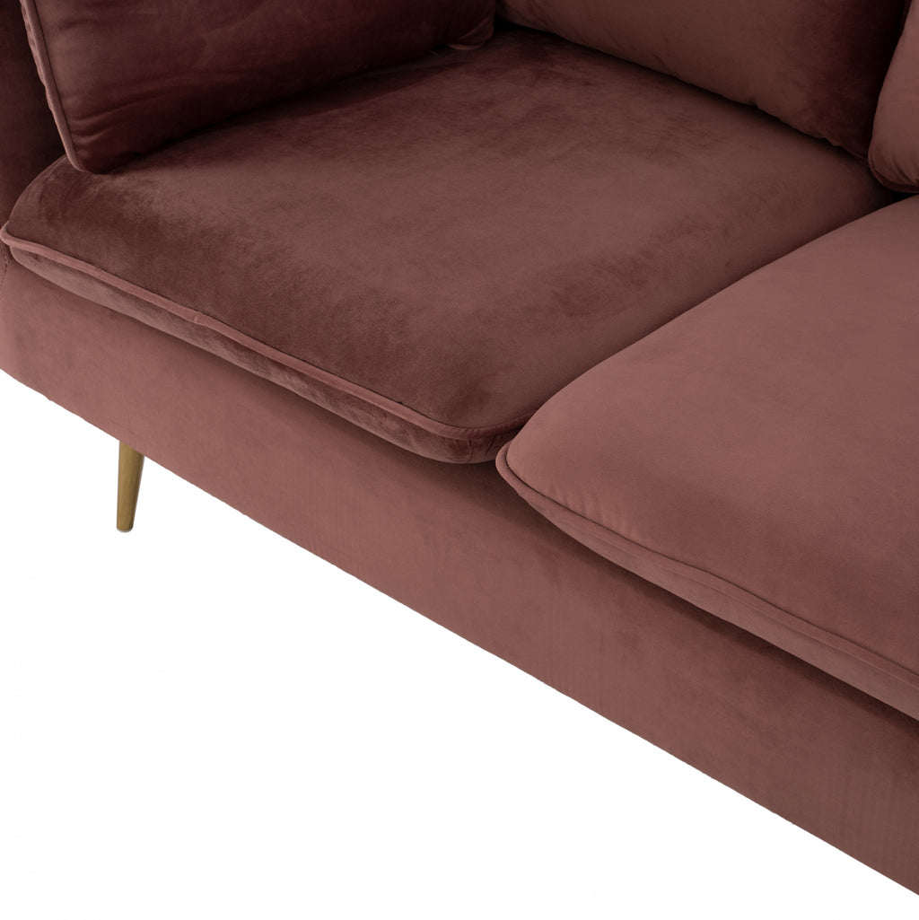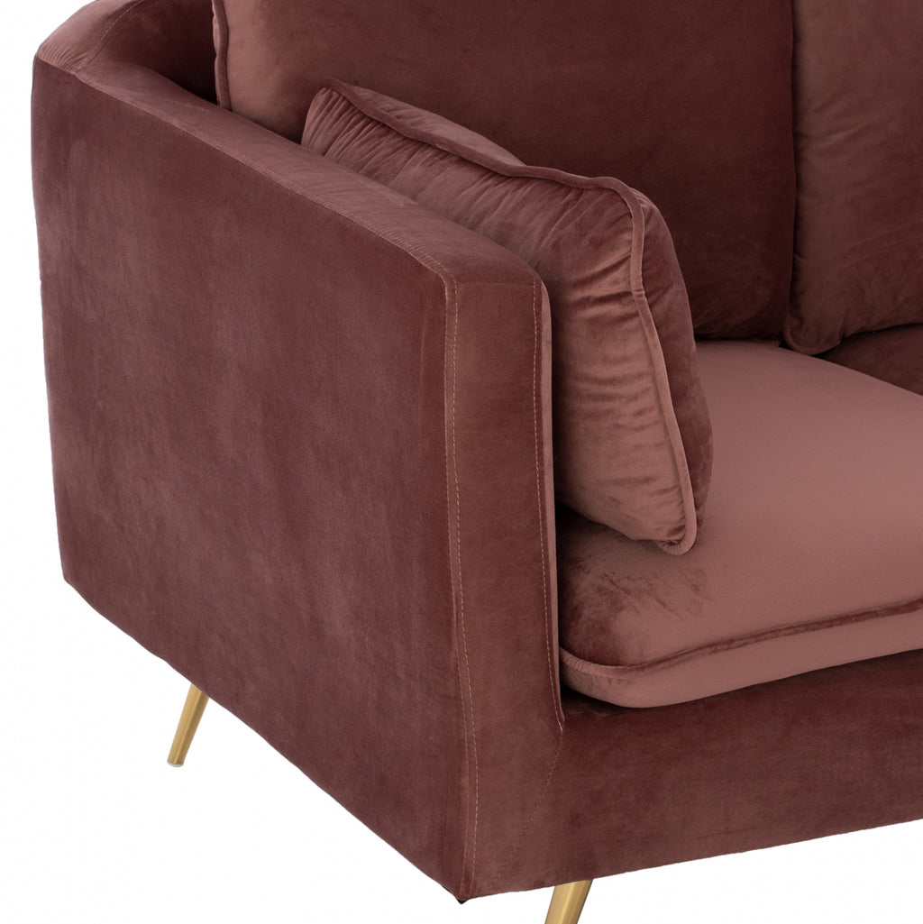 Двуместен диван Карън в нюанс гнила ябълка 152х84х95 см. Този двуместен диван ще бъде чудесно място за чат, четене, гледане на телевизия или просто почивка. Отличаващ се с компактен, но модерен дизайн, диванът ще се впише перфектно във всеки интериор на хола. Двуместният диван е тапициран с кадифе, което не се износва и е с пълнеж от мек дунапрен. Има големи удобни възглавници, на облегалката, седалката и 2 декорации за допълнителен комфорт. Краката са метални позлатени, което прави дивана много стабилен и издръжлив. Размери: 152x84x95 см. Размери на седалката: 125х60 см. Размери на гърба: 130х50см. Височина на крака: 20 см. Височина на седалката: 45 см. Височина на ръцете: 70 см. Разстояние между краката: 117х70 см.