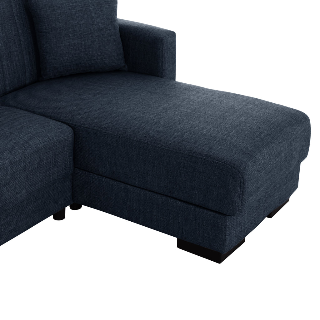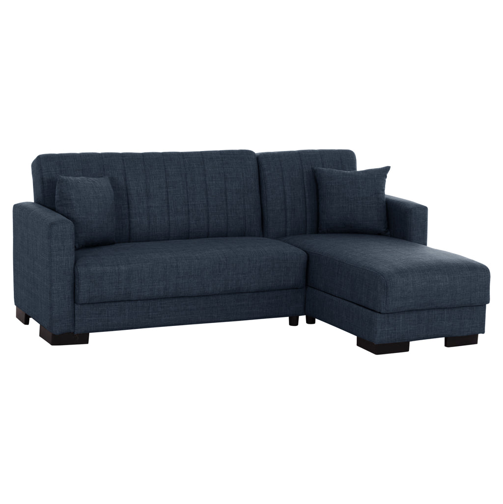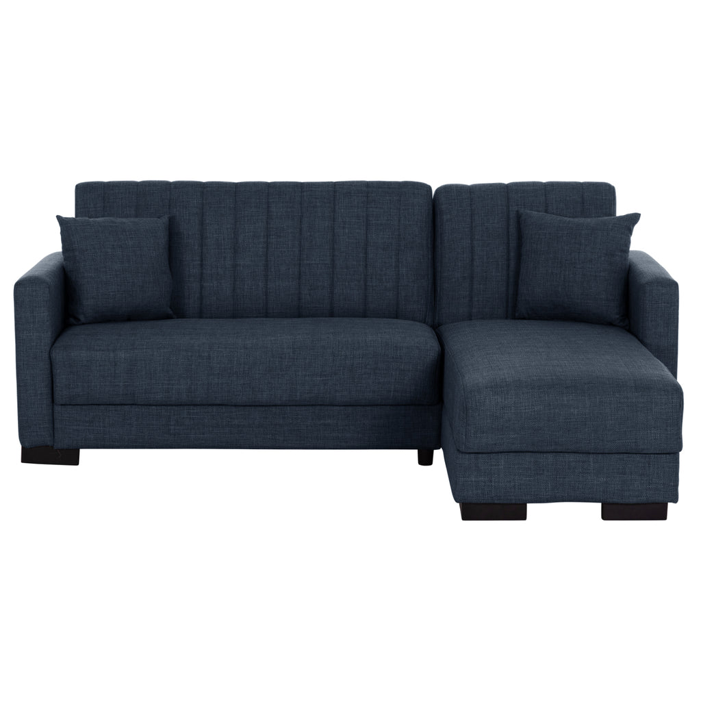 GHUFRAN е удобен и практичен ъглов диван. Цветът на тапицерията на целия диван е СИН, както и двете декоративни възглавници. Висококачествената материя на тапицерията има вертикални шевове само на гърба, докато пълнежът на седалката и облегалката е изработен от пяна, която предлага комфорт и правилна опора, ако се използва като легло. Защото това е основната характеристика на този диван. Освен че е ъглов диван, той се превръща и в легло чрез лесен за използване механизъм "клик-клак". И тъй като диванът може да се постави както в ляв, така и в десен ъгъл, неговата полезност и функционалност надхвърлят обичайното. И сякаш това не е достатъчно, под седалките има места за съхранение, които винаги са полезни във всеки дом, независимо къде е поставен диванът. Друга страхотна характеристика на дивана е, че страната, която образува ъгъла, може да се "отреже" и да се използва като отделен фотьойл или кресло! И накрая, краката на дивана са широки и ниски, което придава твърдост на цялата конструкция. РАЗМЕРИ: 202x78-140x78 см. Размери на седалката: 180x45-112 см. Размери на облегалката: 180x46 см. Височина на седалката: 38 см. Височина на подлакътниците: 56 см. Размери на леглото: 120x100 см. (основната част) 60x165 см. (ъгълът) Място за съхранение: 105x60x12 см. (в основната част) 56x63x12 см. (в ъгъла) 47x60x12 см. (в ъгъла) Височина на краката: 7 см. МАТЕРИАЛИ ЗА КОНСТРУКЦИЯ: Рамката на дивана е дървена, а механизмът на леглото е метален за голяма издръжливост при продължителна употреба. Тапицерията на леглото е изработена от висококачествен плат, а пълнежите както на седалката, така и на облегалката са изработени от пяна със средна твърдост, която предлага комфорт и качествен сън, когато се превърне в легло. Краката са ниски и изработени от подсилен полиетилен, за отлична устойчивост на тегло и влага. ПОДДРЪЖКА: Висококачествените материали, от които е изработен диванът, го правят лесен за употреба и, разбира се, лесен за поддръжка. Редовно почистване с влажна кърпа ще придадат на дивана вид на нов. ПРЕДИМСТВА: • Отлично качество на материалите • Удобна седалка • Преобразуване в легло с лесен механизъм • Ъглова обръщаемост • Здрави крака • Място за съхранение под седалката • Декоративни възглавници • Удобни размери за транспорт, тъй като е сглобен от 3 части. Основна седалка, ъглова част и подлакътници.