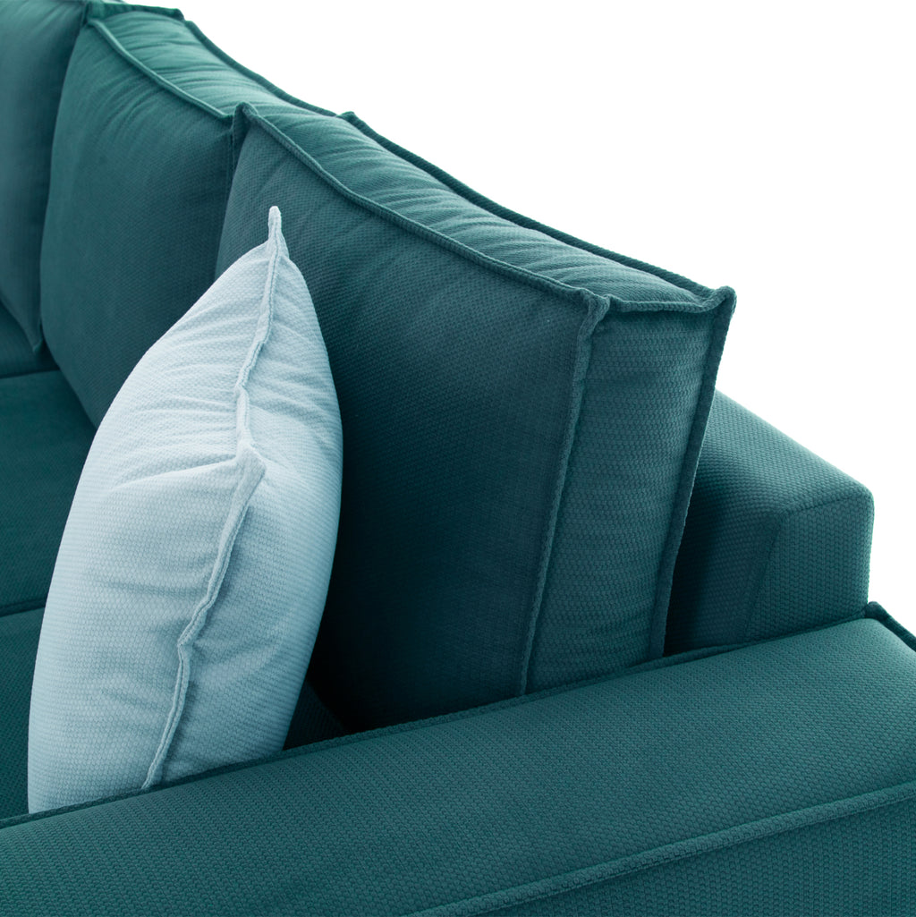 ХОМЕМАРКТ ви представя новия, гръцко производство, ъглов диван "МОНАКО", с 5 години гаранция. Диван с несравнимо качество и красота, който ще зарадва както своя собственик, така и неговите гости! Започвайки с основите и очевидното, цветът на плюшената тапицерия на този диван е ПЕТРОЛНО ЗЕЛЕН. Разполага с 3 възглавници за гръб и 3 възглавници за седалка, които ще дадат перфектно усещане за комфорт! Приятният естетичен щрих с релията в същия цвят, която минава през ъглите на подлакътниците, както и облегалните възглавници и декоративните възглавници допълват естетическото превъзходство на дивана по най-добрия начин. Основната характеристика на дивана обаче е, че създава ъгъла, който ви харесва, независимо дали е ляв или десен. Частта, която оформя ъгъла, е самостоятелна и е свързана с останалата част от дивана хармонично с дамаска с "черта", която се намира под голямата възглавница в ъгъла. РАЗМЕРИ: Общи размери: Общи размери: 240x94 - 170x72 - 86см. Размери на седалката: 192x63 - 130 см. Размери на гърба: 196х46см. Височина на седалката: 43 см. Височина на ръцете: 52 см. МАТЕРИАЛИ НА ИЗРАБОТКА: Рамката на дивана е изработена от масивна тополова дървесина и MDF облицовка. Когато говорим за масивно дърво, имаме предвид дървета, които са направени изцяло от ствола на дърво и са най-скъпият избор по отношение на дървесина. Тополата принадлежи към твърдите дървесини, но в зависимост от вида може да бъде по-мека от някои други дървесини, които принадлежат към меката категория. Обикновено се използва широко за направата на няколко вида мебели. МДФ (влакна със средна плътност) е модерен материал с основните характеристики на минимално абсорбиране на влага, хомогенност на масата, задоволителни механични свойства, отлична гладкост и много възможности за обработка. Краката на дивана са ниски, кръгли и изработени от подсилен полиетилен с отлична устойчивост на тежест и влага. Платът, който покрива целия диван, сега е клас A++ Easy Clean. Това е плат, известен още като alexiasto, който също е 90% водоотблъскващ. Пълнежът на седалните възглавници е пяна със средна твърдост 400plus, докато те имат двойно подсилена вата и допълнителни еластични влакна, за издръжливост и отличен експлоатационен живот. Облегалните възглавници са с пълнеж Rollofill. Rollo Fill е високотехнологичен пломбиращ материал, изработен от еднородни силиконови влакна. Материя, която придава на възглавниците еластичност и бързо възстановяване. Той е напълно хигиеничен, без мирис и хипоалергичен. ПОДДРЪЖКА: Качествените строителни материали на дивана го правят изключително удобен! Както беше обсъдено по-горе, тъканта за подплата е устойчива на петна и до голяма степен водоустойчива, което прави поддръжката лесна. Почистване и минаване с мокра кърпа по цялата й повърхност ще я освежи и ще я запази дълги години като нова. ПРЕДИМСТВА: •Произведено в Гърция •Масивна дървена рамка •Високотехнологични и качествени строителни материали •Материя клас A++ Easy Clean, устойчива на петна и 90% водоустойчива •Цип на възглавниците и декорациите на седалката и облегалката •Възможност за смяна на ляв или десен ъгъл •Удобен размер •Самозалепващ се "грач", който държи ъгъла на място •Произвежда се от 2 части, което се комбинира със средния си размер прави го идеален за лесно транспортиране или преместване, тъй като може удобно да влезе през врат