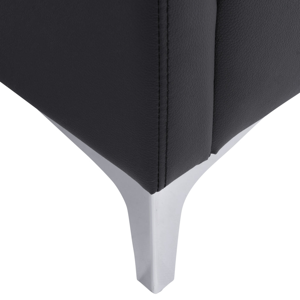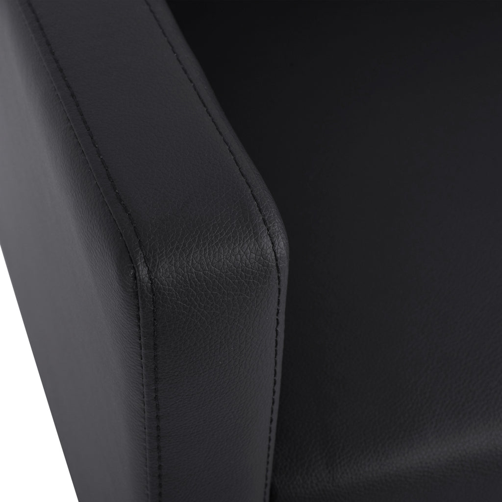 Двуместен диван с еко кожа в черен нюанс 113x71x71H см. Елегантен модерен диван, който ще допълни вашата всекидневна. Този двуместен диван ще бъде чудесно място за чат, четене, гледане на телевизия или просто почивка. Отличаващ се с компактен модерен дизайн, диванът ще се впише перфектно във всеки интериор на хола. Двуместният диван е тапициран с висококачествена изкуствена кожа, почиства се лесно и има подсилени крака, които го правят особено стабилен и издръжлив. Идеален за професионални пространства. Размери: 113x71x71H см. Височина на седалката: 38см. Височина на ръцете: 54см. Размери на седалката: 100х50 см.