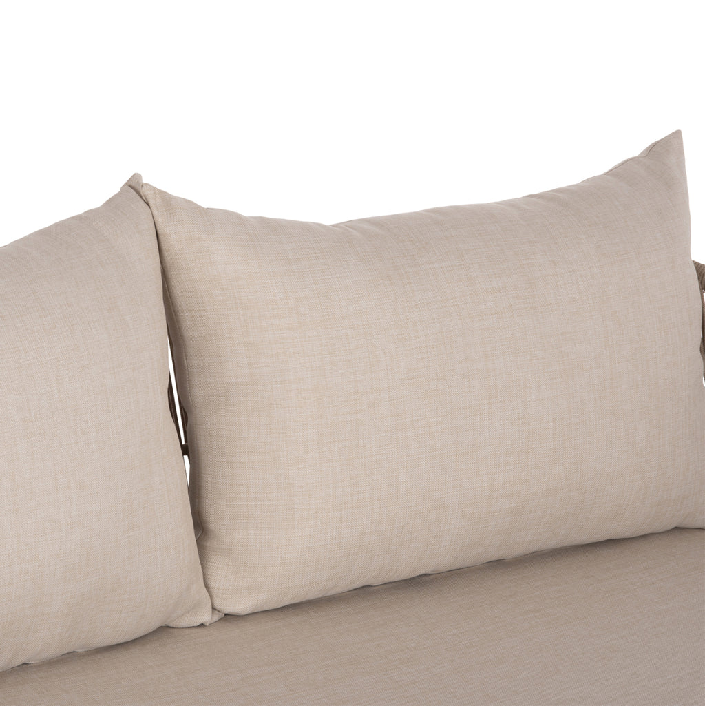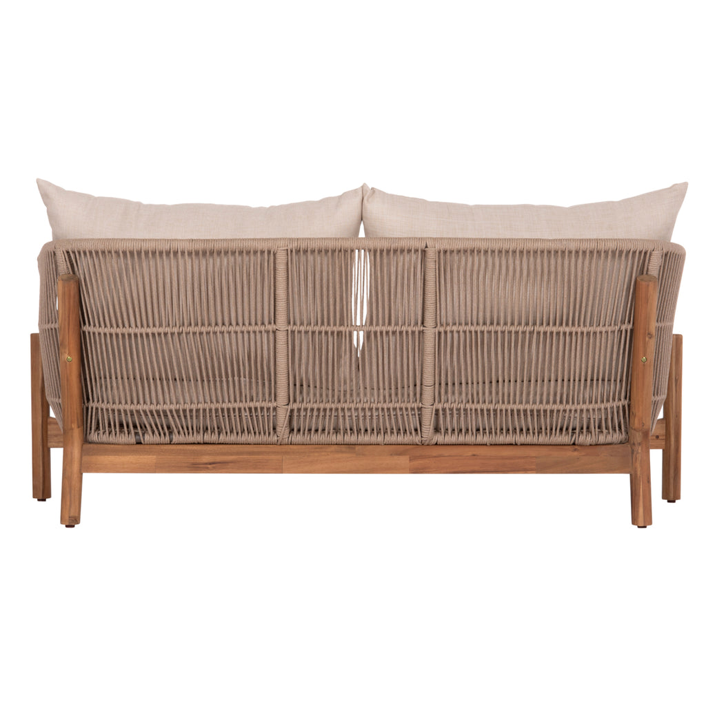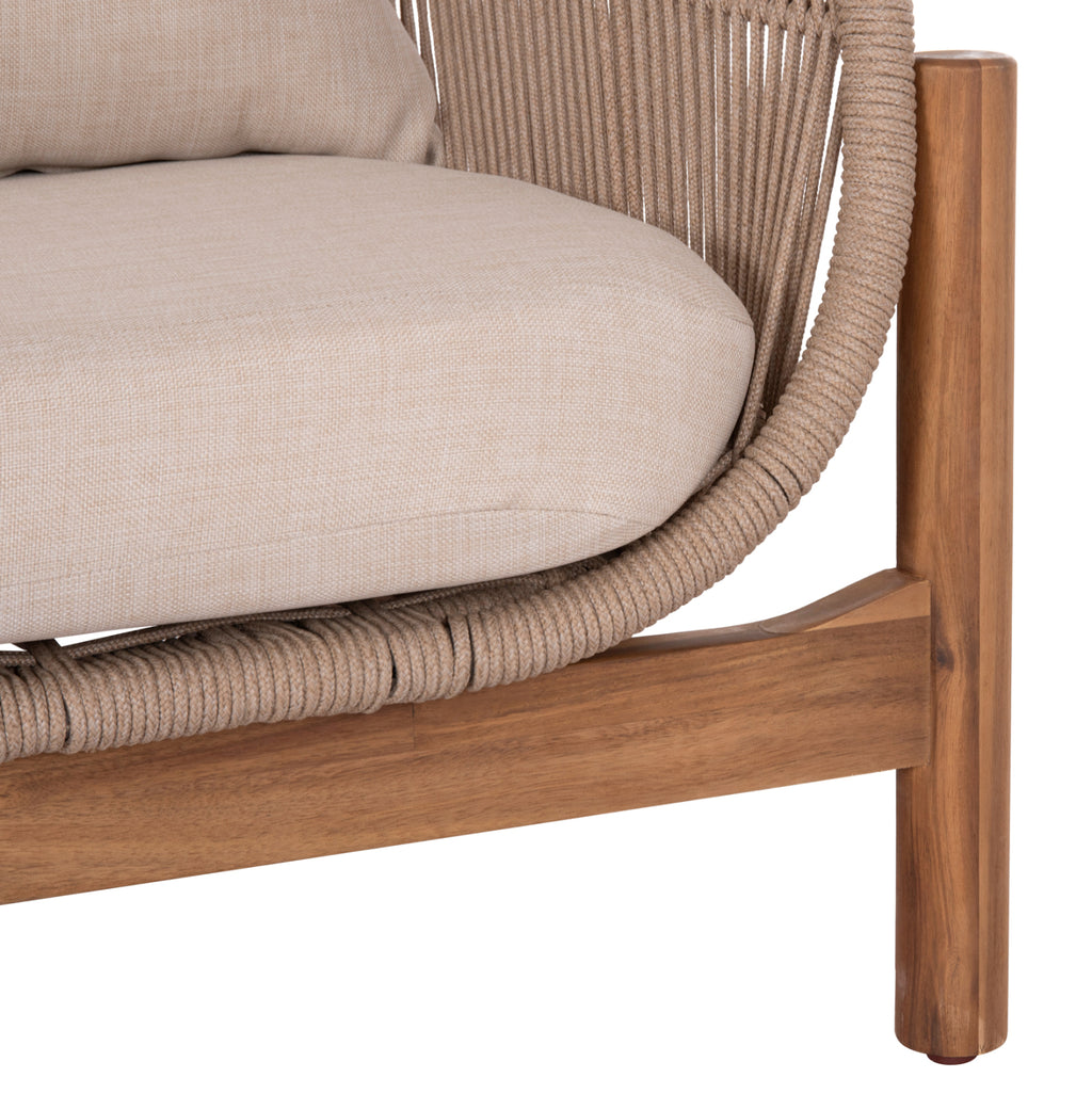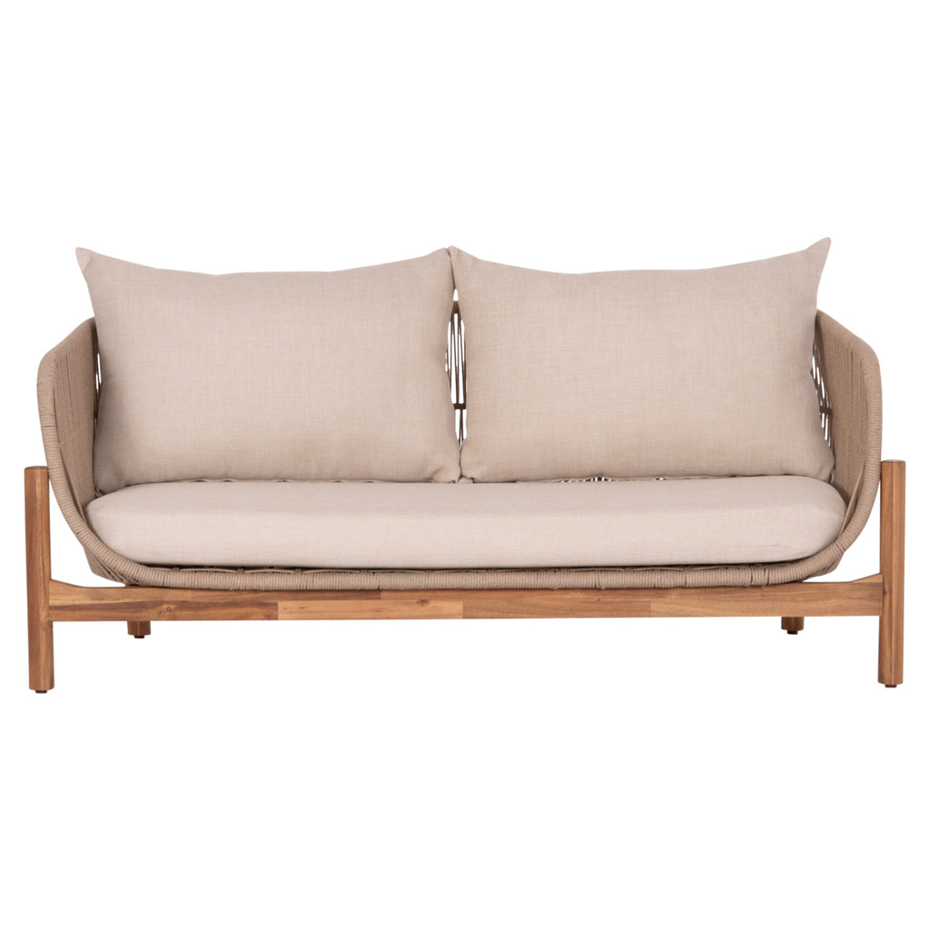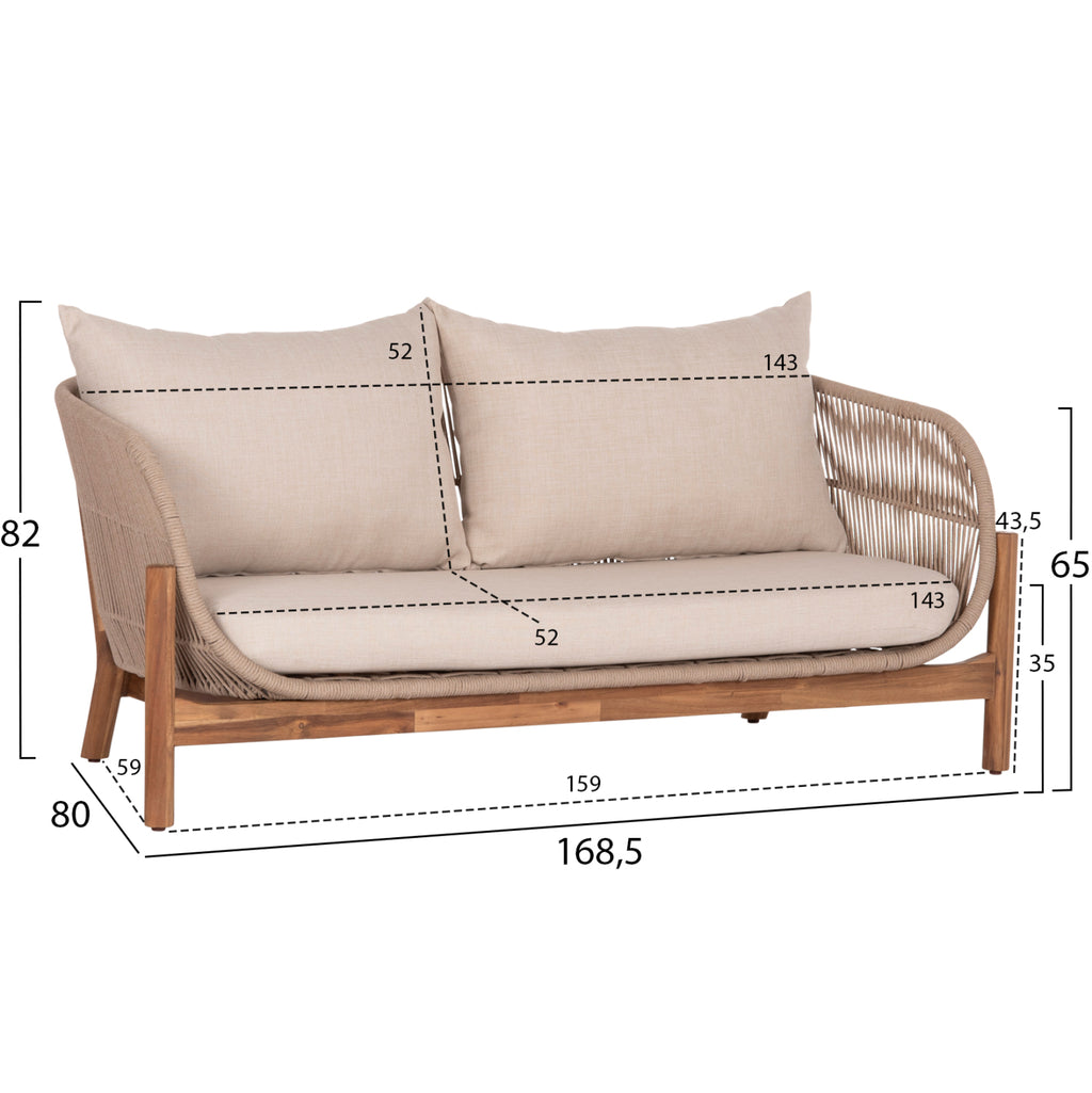 Представяме ви 2-местен външен диван SANJI. Има основна рамка от акациево дърво в НАТУРАЛЕН цвят, и алуминиева рамка за седалка, обшита с въже в светло БЕЖОВ цвят! Възглавниците са покрити и с полиестерна дамаска в БЕЖОВ цвят и са с пълнеж от дунапрени със средна твърдост за максимално удобство, както и с цип. Идеален за завършване на набор от подобна естетика, но разбира се може да „стои“ сам във всяко външно пространство! РАЗМЕРИ: 168.5x80x68.5-82H см. Размери на седалката: 143x52 см. Размери на гърба: 143х52см. Височина на крака: 43,5 см. Височина на седалката: 35см. Височина на ръцете: 65 см. Разстояние между краката: 159х59 см. Дебелина на подложките: 12 см----Спецификации на пяната: D25---Покрития: 230g Полиестерно въже Спецификации: Φ6mm МАТЕРИАЛ НА КОНСТРУКЦИЯТА: Акациевото дърво е един от най-добрите видове дърво на пазара. Неговата механична якост и механични свойства се доближават до тези на други добре познати дървесини като бук, дъб, афцелия, тик и др. Има висока биологична устойчивост, т.е. проявява отлична устойчивост на действието на микроорганизми, които могат да разрушат материала и конструкцията. Възможно е да има пукнатини, цветови вариации и разлики в размерите на продукта поради обработка на дърво. Това не са дефект на продукта. ПОДДРЪЖКА: Достатъчно е минаване с влажна кърпа, а при петна с нежен спрей от многото налични на пазара. Като цяло, дори и при петна, тайната е бързото почистване, преди дървото да има време да се "напои". *Доставя се несглобен във фабрична опаковка **Точното цветопредаване на продукта може леко да се различава от действителния продукт поради различните настройки на всеки монитор.