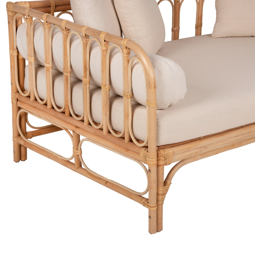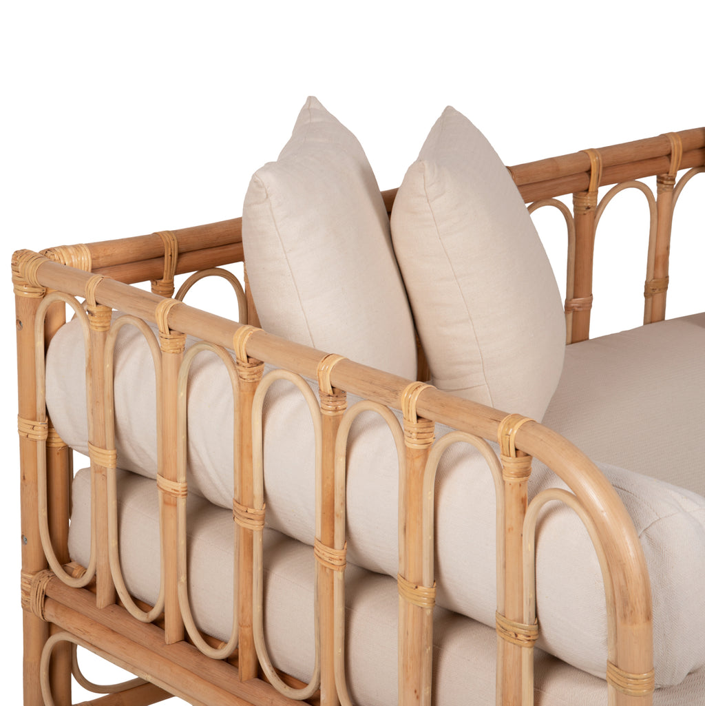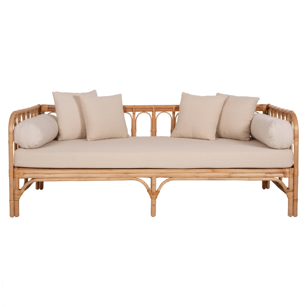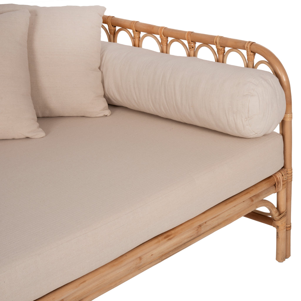 Диван през деня, легло през нощта или по всяко друго време! Точно това е надписът, който най-добре описва ЛИНЯНО. Диван единствен по рода си. Има къс гръб, докато ръцете и краката са високи. Като цяло дизайнът му напомня повече на голям реклайнер, отколкото на диван, какъвто го познават всички. Разполага с удобен матрак с БЕЖОВ дамаска, две цилиндрични възглавници за ръце и още 4 възглавници, които чудесно допълват този много специален диван. Изработен е изцяло от ратан в естествения му цвят и със сигурност ще бъде истинско „бижу“ във вашето пространство. РАЗМЕРИ: 200x100x75H см. Размери на седалката: 160х80 см. Височина на седалката: 47 см. Размери на матрака: 200х90 см. МАТЕРИАЛИ НА ИЗРАБОТКА: Диванът е изработен от естествен ратан. Ратанът е най-добрият и използван естествен материал за различни конструкции. Ратанът, отглеждан в Северна Азия, е най-висококачественият и най-издръжлив материал от подобни, отглеждани в други региони. С повече от 600 различни вида РАТАНА може да се разграничи като силно влакнесто растение, подобно на бамбука и широко използвано, защото е леко, издръжливо, гъвкаво и привлекателно. ПОДДРЪЖКА: Отличните качествени строителни материали на дивана го правят лесен за използване и разбира се лесен за поддръжка. Почистване и минаване с влажна кърпа на редовни интервали ще направят дивана да изглежда като нов.