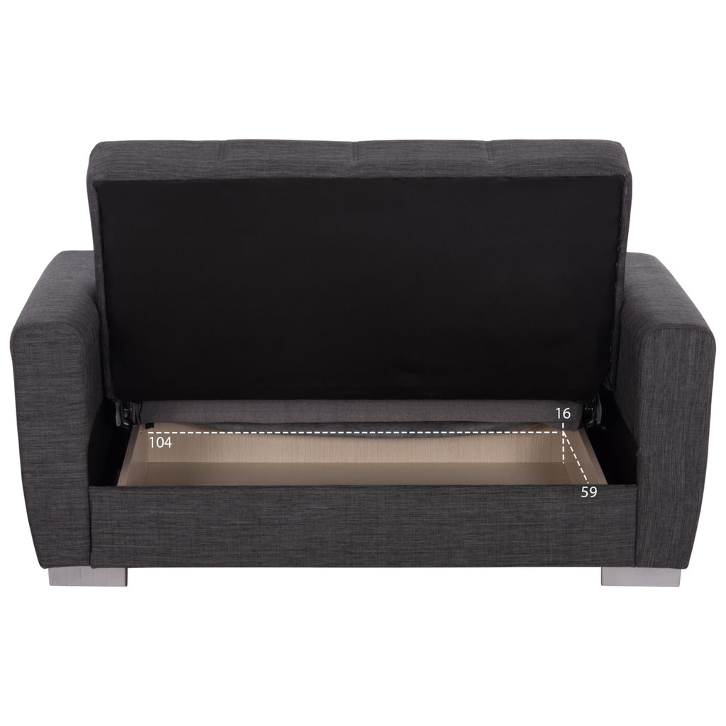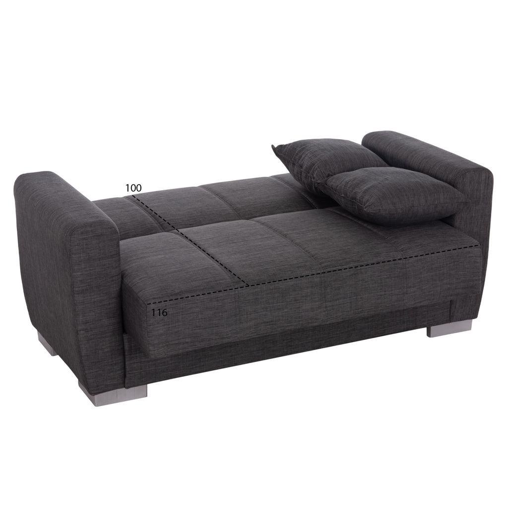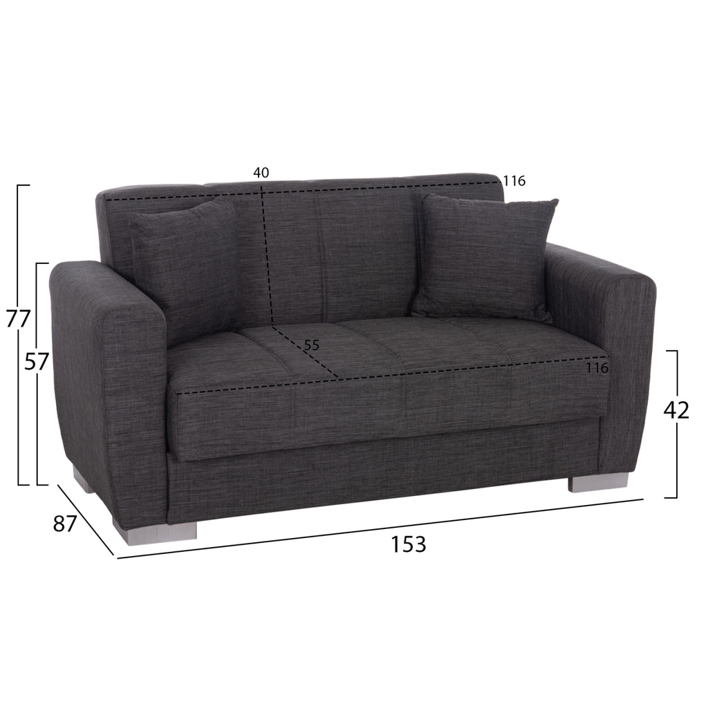ΜΕ3241.03 е двуместен диван, който е красив и практичен. Тапицерията му е изработена от висококачествен СИВ плат, както и двете декоративни възглавници. Естетически, облегалката и седалката на дивана имат вертикални шевове, които ги разкрасяват, а подлакътниците са достатъчно широки, за да предложат комфорт и опора. Основната характеристика на дивана обаче е, че облегалката се сгъва и се превръща в удобно легло за спешни случаи, чрез лесен за използване механизъм "щрак-щрак". Следствие от това, разбира се, е наличието на място за съхранение под седалката на дивана, което винаги е полезно, особено в студентските жилища. И накрая, краката на дивана са широки и ниски, което придава здравина на цялата конструкция. РАЗМЕРИ: 153x87x77H см. Размери на седалката: 116x55 см. Размери на облегалката: 116x40 см. Височина на седалката: 42 см. Височина на подлакътниците: 57 см. Размери на леглото: 116x100 см. Размери на пространството за съхранение: 104x59x15H см. МАТЕРИАЛИ ЗА ИЗРАБОТКА: Рамката на дивана е дървена, а механизмът на леглото е метален за голяма издръжливост при продължителна употреба. Тапицерията на леглото е изработена от висококачествен плат, а пълнежът както на седалката, така и на облегалката е от средно твърд дунапрен, който предлага комфорт и качествен сън, когато се превърне в легло. Краката са ниски и са изработени от подсилен полиетилен с "метален" вид, за отлична устойчивост на тегло и влага. ПОДДРЪЖКА: Висококачествените материали за изработка на дивана го правят лесен за употреба и, разбира се, лесен за поддръжка. Редовното почистване с влажна кърпа ще придаде на дивана вид на нов. ПРЕДИМСТВА: •Отлично качество на материалите за изработка •Удобна седалка •Преобразуване в легло с механизъм •Здрави крака •Място за съхранение под седалката •Удобни подлакътници •Декоративни възглавници •Удобни размери за 2 души
