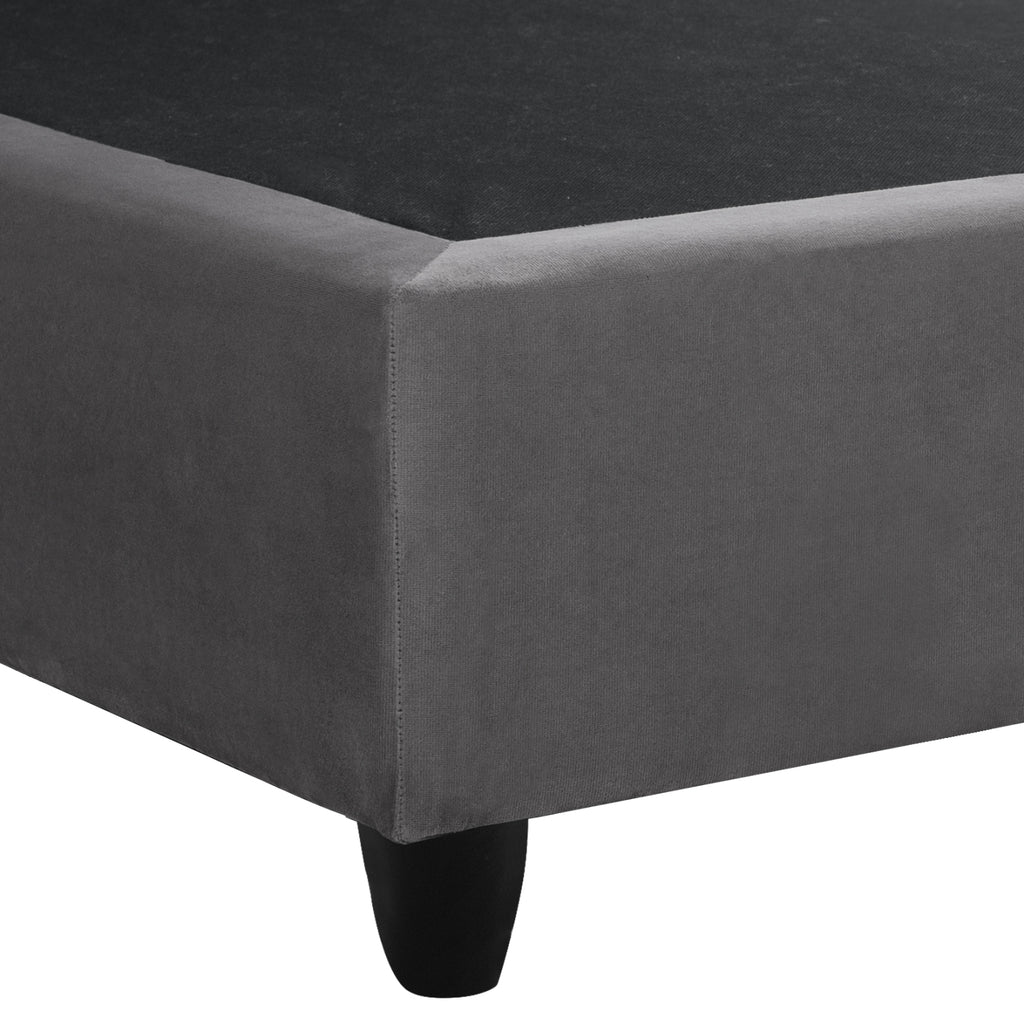 Таблата е висока и украсена само с 2 копчета, а цялата покривка на леглото е изработена от прекрасна кадифена материя. СИВИЯТ цвят в цялото легло е неутрален и може да се комбинира с множество декоративни мотиви. Основната характеристика на това легло обаче е, че то не следва класическата конструкция с ламелни рамки за носене на матрака, а се състои от непрекъсната повърхност (2 ПДЧ плоскости), върху която се поставя матракът! В матрак с размери 150х200см. ще побере всяка ваша мечта!