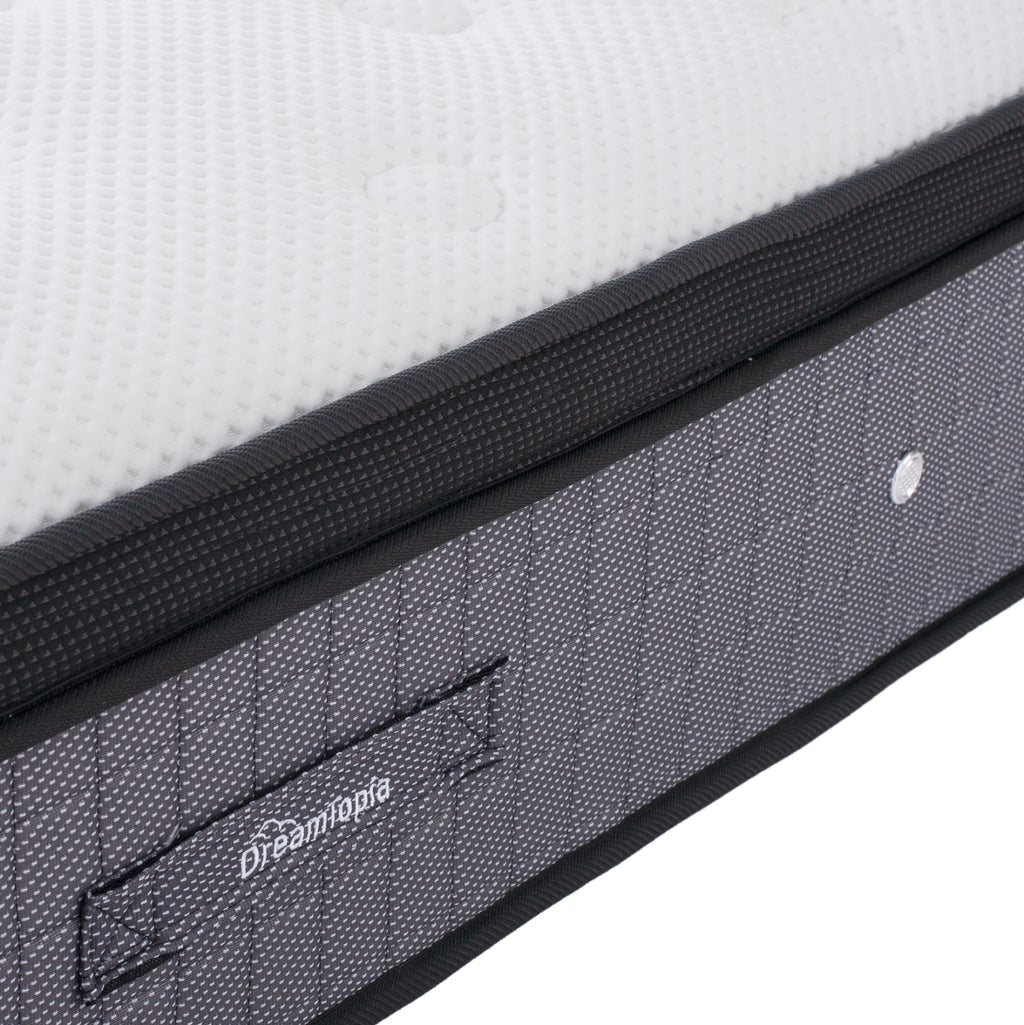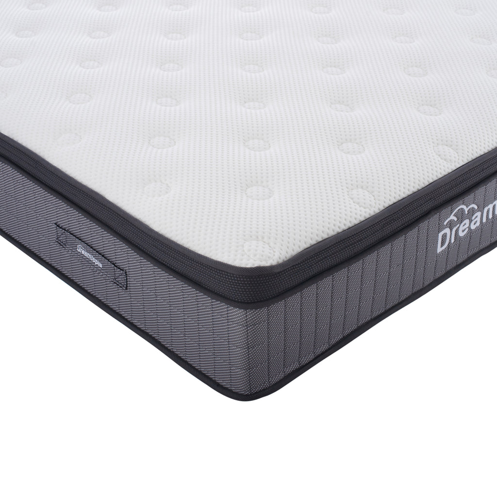 Представяме ви чисто новата колекция матраци DREAMTOPIA! Колекция, която създадохме, за да ви предложим най-доброто изживяване при сън, използвайки само най-добрите материали и разбира се, най-модерното в конструкцията на матраците. Серията ULTIMATE включва POCKET SPRINGS и топ матрак EURO TOP и се предлага със 7-годишна гаранция! В крайна сметка, матракът е средство за благополучие и релаксация. Човек със здравословен сън сменя позицията си на сън до шестдесет пъти на нощ (за да избегне мускулни и ставни болки). Възможността за промяна на позицията, без да бъде възпрепятстван, е необходимо условие за освежаващ сън. Равномерното разпределение на налягането предотвратява болката в тялото там, където може да има най-голям натиск (рамене, бедра, пети) и гарантира добро кръвообращение. Отличната регулация на температурата (нито твърде горещо, нито твърде студено) и влажността (абсорбиране на потните течности) са перфектно адаптирани към индивида. Този конкретен матрак използва технологията на независимите пружини, която е може би най-популярният вид матрак с нова технология. Сърцето на матрака се състои от много независими пружини, обвити в цилиндрична джобна материя. Всяка пружина е плътно и равномерно подравнена със съседните пружини. Тази техника позволява на пружините да се движат независимо от съседите си. Тази сложна техника прави джобните матраци адаптивни към формата на тялото. Топ матракът EURO TOP нарича горната част на матрака или самия матрак „евро-топ матрак“. Но какво означава тази допълнителна повърхност на практика и какво предлага тя на тялото? Топ матракът Euro-Top допълва и подобрява уникалното усещане за сън, което матракът дава със своите луксозни дунапренени материали и ергономичен дизайн. В същото време той удължава живота на матрака, защото го предпазва от влага и износване, като същевременно увеличава неговата издръжливост и запазва формата му. Основната разлика при топовете за възглавници е, че топовете euro top са зашити по периметъра на основното тяло на матрака, придавайки лек наклон към краищата на матрака, и нямат „квадратен“ вид или вид на самостоятелно парче върху матрака. По същество това е едно и също нещо, с разликата в сглобяването на топ матрака върху матрака. ТЕХНИЧЕСКИ ХАРАКТЕРИСТИКИ: Размери: 150x200 см. Височина на матрака: 34 см. • Джобни пружини 260 бр./м², с височина на пружината 20 см • 1 лист FELTRON 1200 гр. от всяка страна • Периметърна опора от пяна ГОРНА СТРАНА • 1 лист Ergo пяна 4 см от горната страна • 1 лист Memory пяна 2 см от горната страна • 1 лист мека пяна 1 см от горната страна • 2 листа Dacron вата 200 гр. от горната страна • Плетена материя от горната страна ДОЛНА СТРАНА • 1 лист Ergo пяна 2 см от долната страна • 1 лист мека пяна 1 см от долната страна • 1 лист Dacron вата 200 гр. от долната страна • Плат Zakar от долната страна ТВЪРДОСТ: 3/5 („5“ е най-твърдият) МАТЕРИАЛИ ЗА КОНСТРУКЦИЯ: За по-добро разбиране на техническите характеристики на матрака, ви предоставяме някои подробности, за да разберете качеството на неговата конструкция. Горната повърхност на матрака е изработена от плетена материя, докато долната повърхност е изработена от плат Zakar. Жакардът е по същество вид (техника) на плетене. МЕМОРИ ПЯНАТА е един от най-добрите материали за изработка на матраци. Създадена е през 70-те години, но с развитието на технологиите сега е един от най