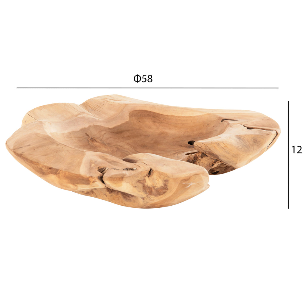 Ако искате да украсите масата си с красиво ръчно изработено произведение, YOKI е отличителен избор. Представлява дървена купа с неправилна форма в естествения цвят на дървото, която със сигурност ще привлече окото. В крайна сметка декорацията винаги ще заема важно място във всяко пространство. РАЗМЕРИ: Φ58x12H см. *Размерите може да варират, тъй като купата е едно парче дърво и всяка купа може да е изрязана по различен начин. МАТЕРИАЛИ НА ИЗРАБОТКА: Купата е изработена от едно парче масивно тиково дърво. Тикът е най-популярният вид твърда дървесина. Той е жълт до тъмно кафяв на цвят, изключително тежък, с висока якост, устойчив на атмосферни влияния, устойчив на стружки и не се разлага. Често водите на дървото му са силни и прави. Използва се за много вътрешни и външни конструкции. ПОДДРЪЖКА: Фактът, че ТИК е част от твърдата дървесина, го прави много лесен за поддръжка. Всичко, от което се нуждае, е почистване от прах и при необходимост почистване с влажна кърпа.