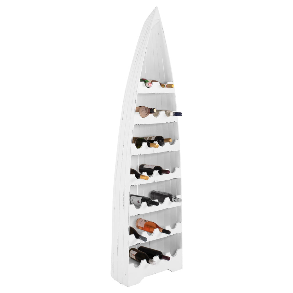 Дървената маза за бутилки MH9494 в бял античен цвят е полезна за всяко пространство. Изработена е във формата на вертикално закрепена лодка, с майсторски издълбани 7 реда за поставяне на 25 бутилки. Това е красива конструкция, която е както декорация, така и практичен предмет за организиране и съхранение на бутилки. РАЗМЕРИ: 55х30х195см. МАТЕРИАЛИ НА СТРОИТЕЛСТВО: Винарската изба е изработена от дърво MAONI. Махагонът е богато оцветено дърво, което е сред най-ценните видове дървесина в света. За разлика от алтернативни дървени продукти като дъб или бор, махагонът има много малко възли или празнини. Това придава на дървото гладък, равномерен зърнест модел, което го прави идеален за фини мебели и дървени занаяти. Повечето дървесни видове, които произвеждат махагон, растат доста големи, което позволява на дървосекачите да произвеждат големи, непрекъснати дъски. Махагонът също е относително лесен за работа. Той е невероятно здрав и издръжлив, което позволява на занаятчиите да създават дълготрайни продукти. В сравнение с други материали, махагонът лесно се шлайфа, чисто се реже или се „обработва“ на струг за дърво. ПОДДРЪЖКА: Фактът, че MAONI е включен в твърдата дървесина, го прави много лесен за поддръжка. Всичко, от което се нуждае, е почистване от прах и при необходимост почистване с влажна кърпа. ПРЕДИМСТВА: Тази винарска изба се побира навсякъде, където пожелаете. Или у дома, или в бизнес помещения. Готов е за предаване и асоциациите, които ще предизвика ще бъдат ориентир.