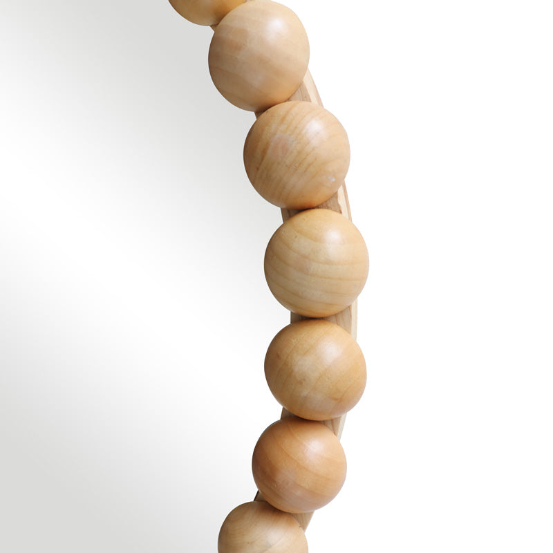 - Дървената рамка създава топло усещане и създава хармоничен контраст с повърхността на огледалото.