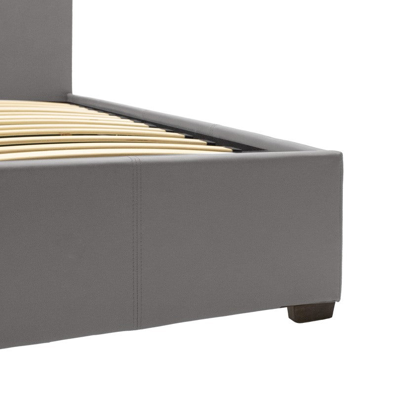 Легло Norse е перфектното решение за модерната спалня, където пространството е ценно. Изработено от подсилена дървена рамка и покрито 100% с висококачествена изкуствена кожа PU в сив матов цвят, то осигурява издръжливост, лесна поддръжка и елегантен външен вид. Таблата е декорирана с подсилени шевове в квадратна шарка, придаващи усещане за лукс и изтънченост.