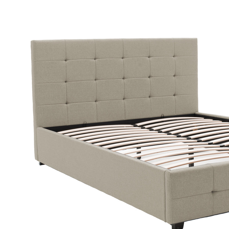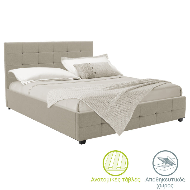 Двойно легло Roi с текстилна тапицерия в елегантен цвят слонова кост 160x200 см е перфектното съчетание на стил и функционалност за вашата спалня.